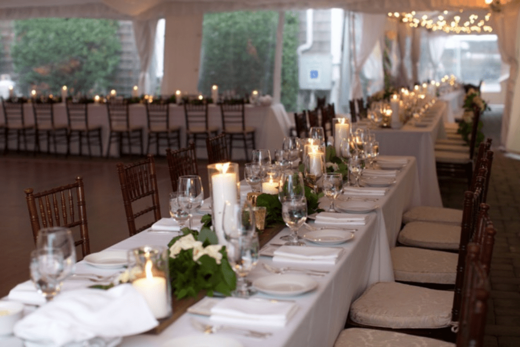 Some couples choose to hold their ceremony and cocktail hour outdoors or under a tent, then move into the ballroom for the reception. However, you can also opt for your reception to be tenting on the waterfront!