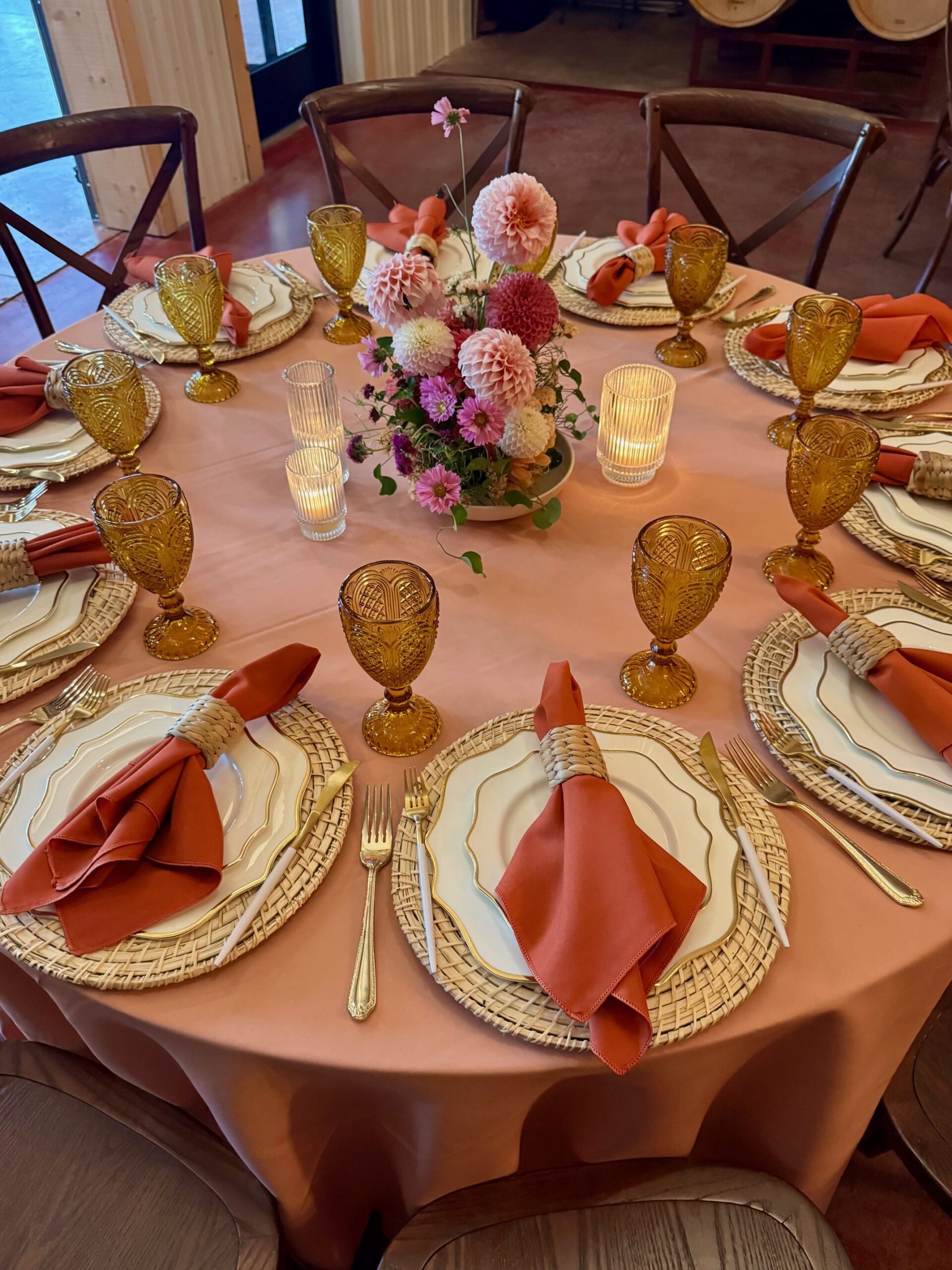 Rich autumn tones of tiger lily and burnt orange brought seasonal warmth to the tablescape, pairing beautifully with the natural textures of the winery grounds. With catering by Washington Inn Catering and event rentals by Collective Event Group, the shoot highlights how thoughtful design and collaboration can transform a winery setting into an effortlessly elegant wedding experience.