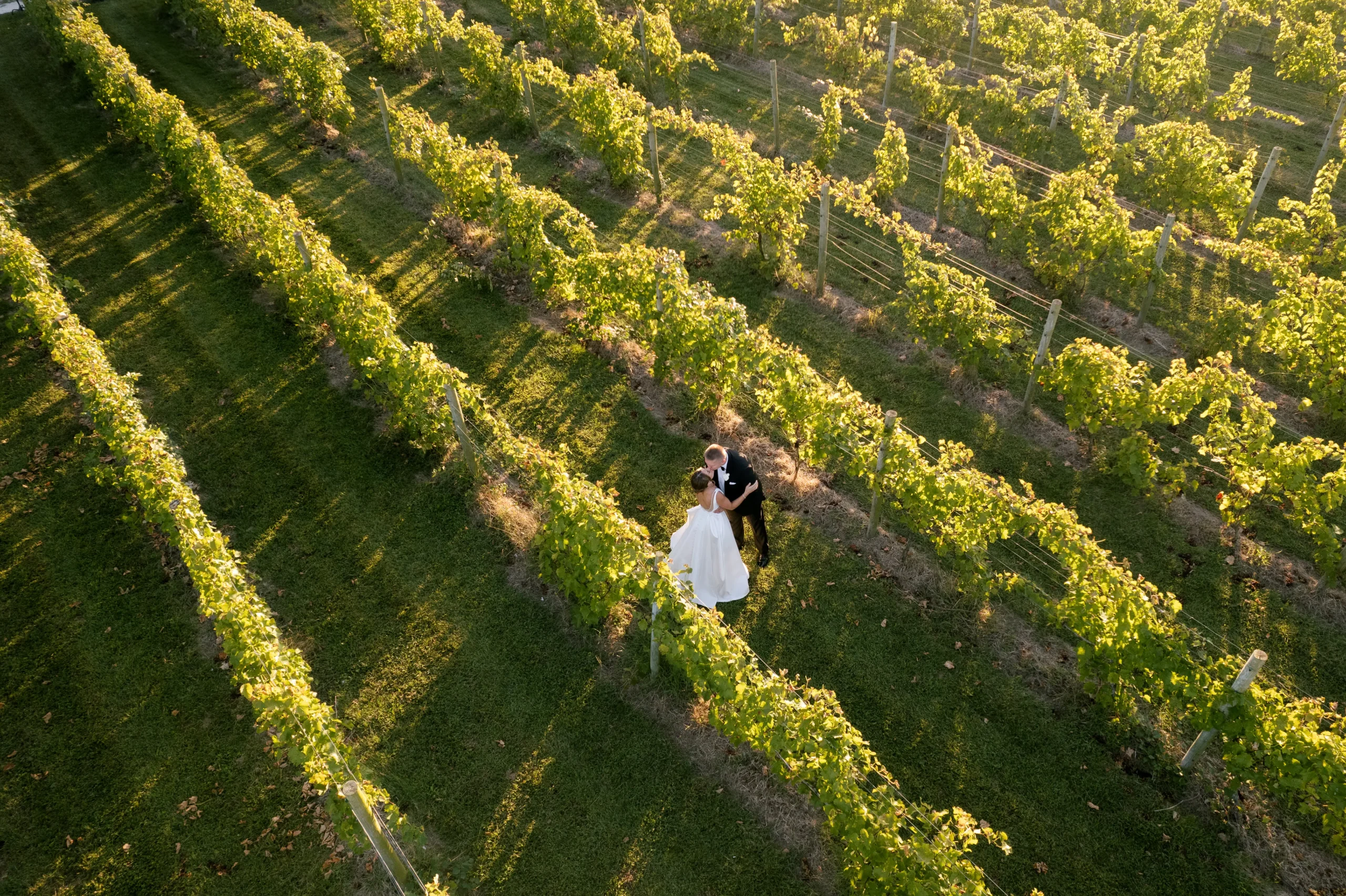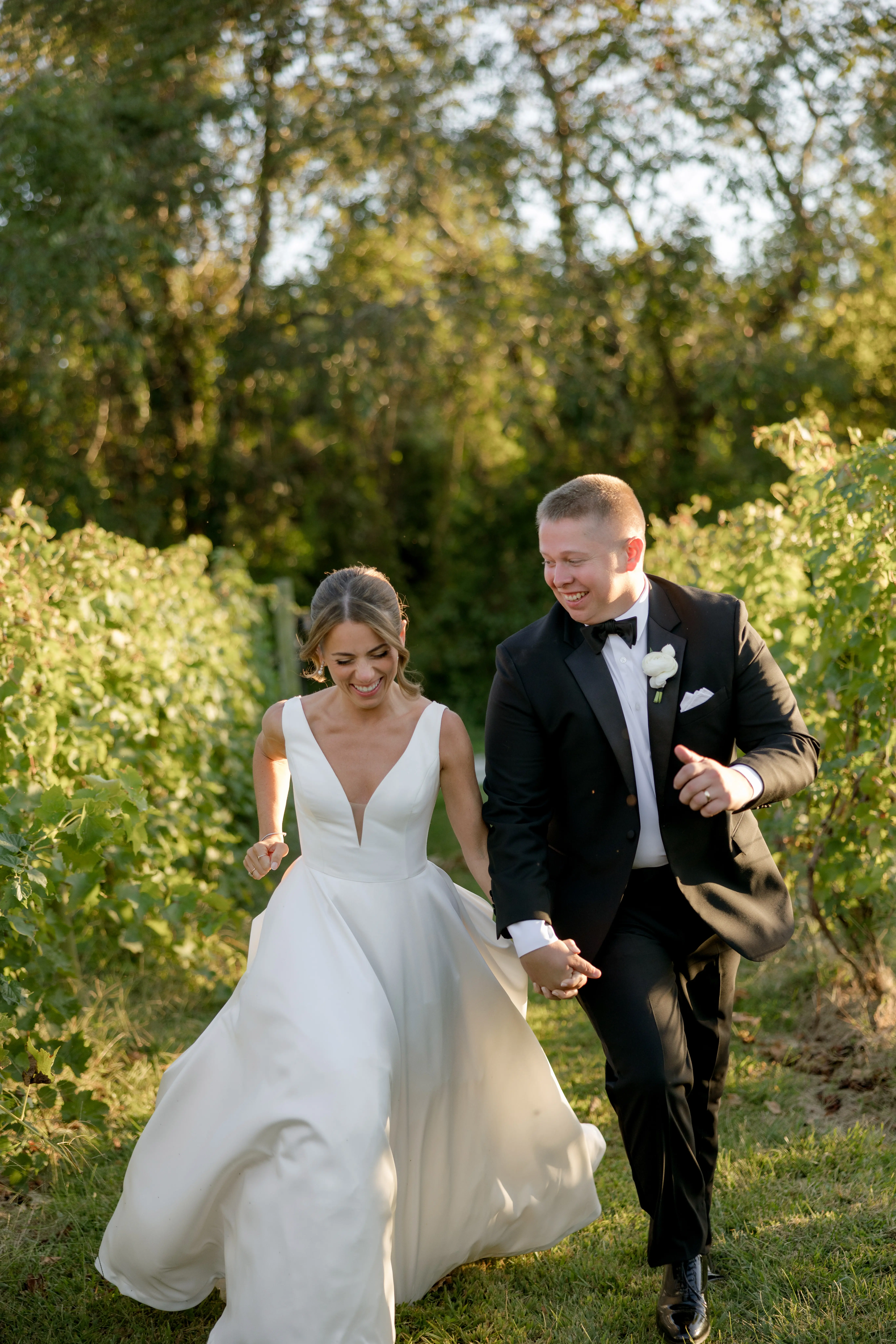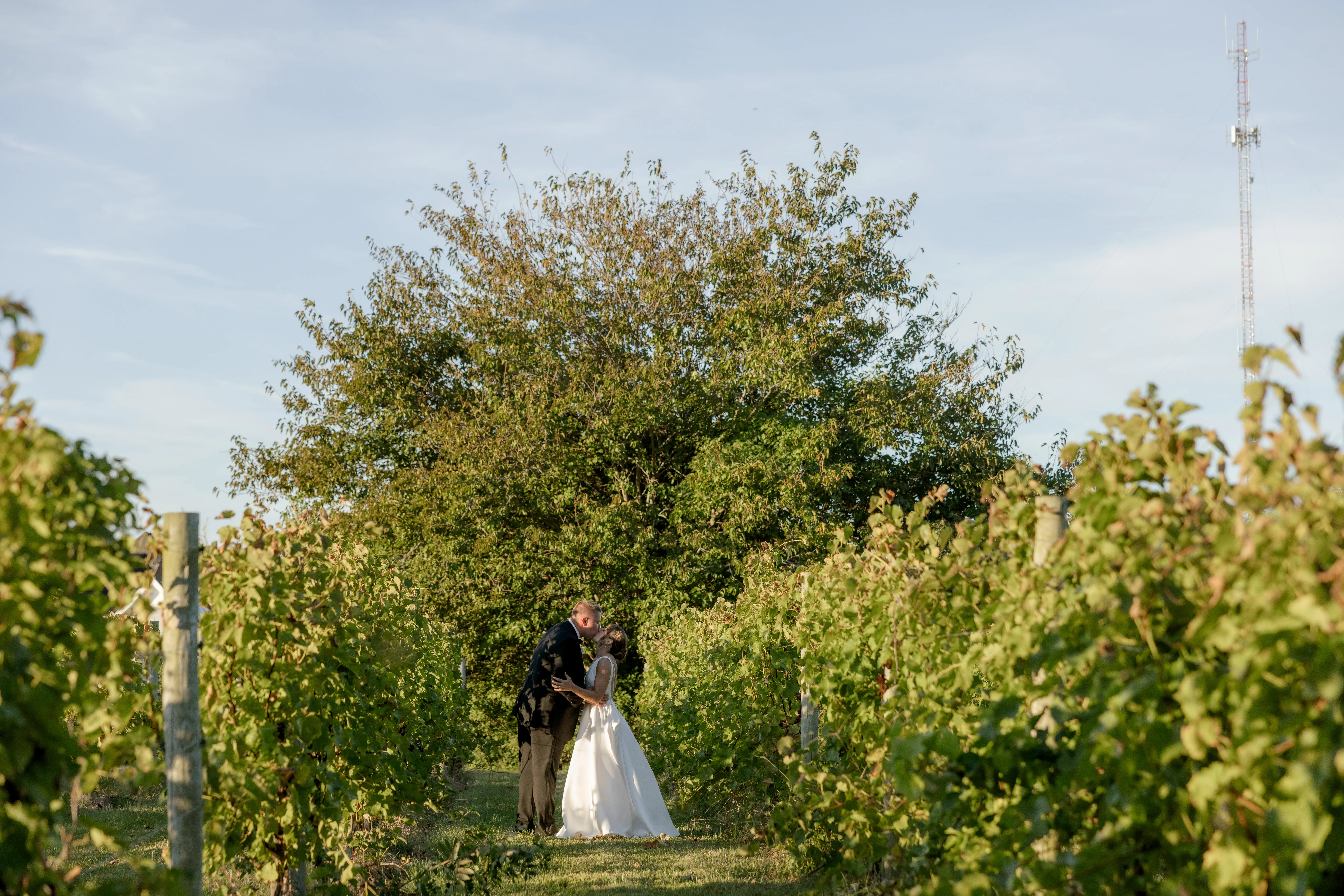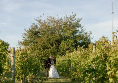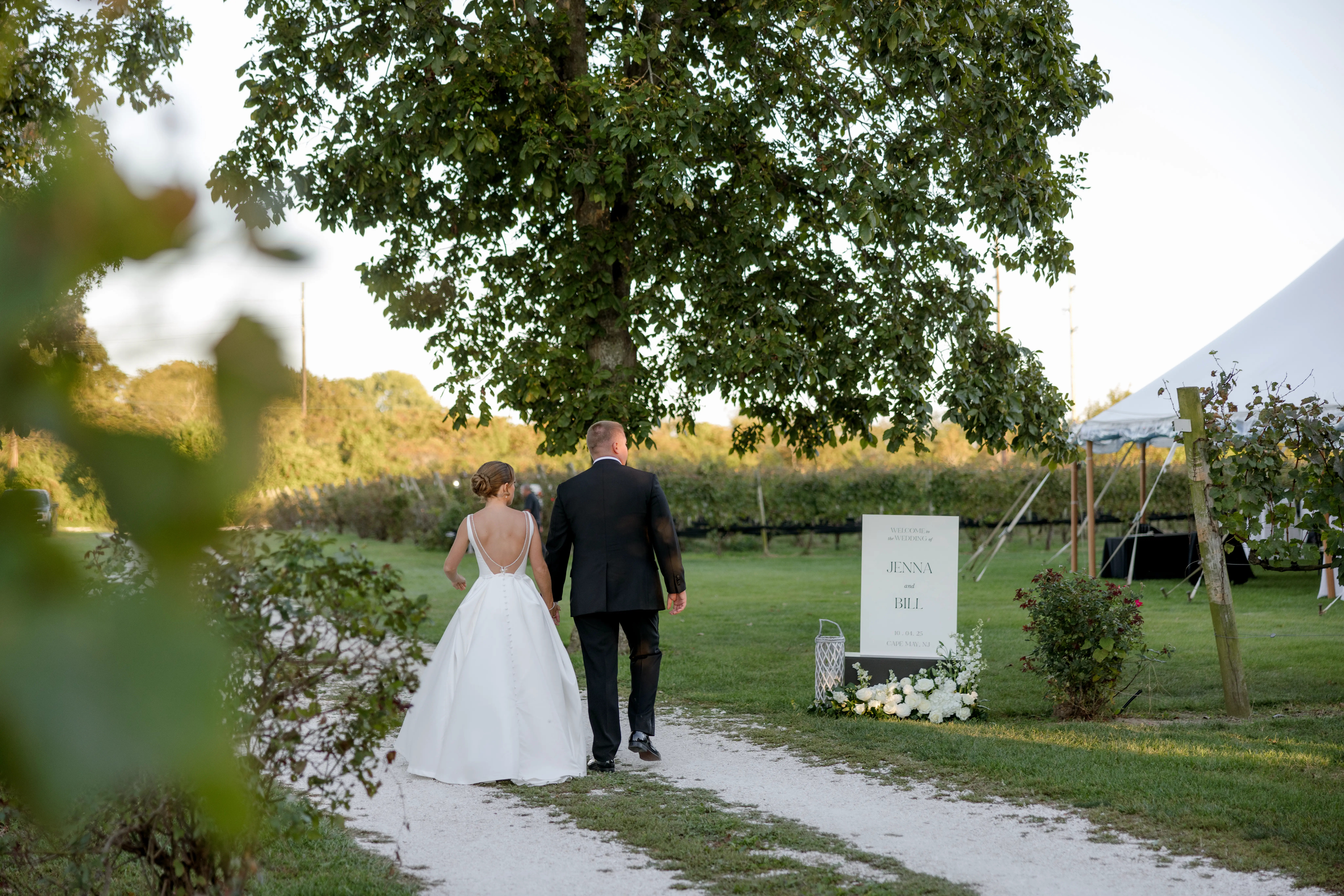 Set among the vineyard rows at Isaac Smith Vineyard, this October wedding brought together classic black and white wedding design, natural greenery, and a beautiful sailcloth tent reception. The result was an outdoor celebration that felt polished, timeless, and perfectly suited to the vineyard setting.
