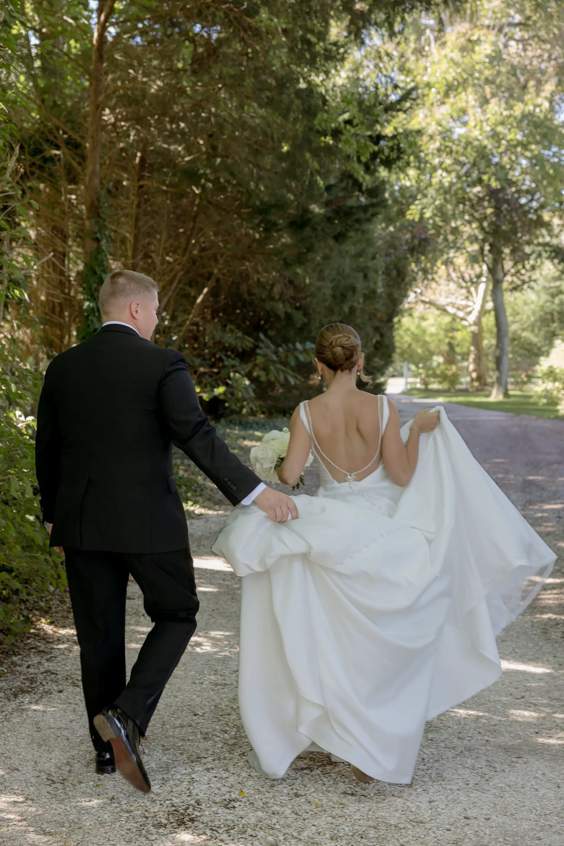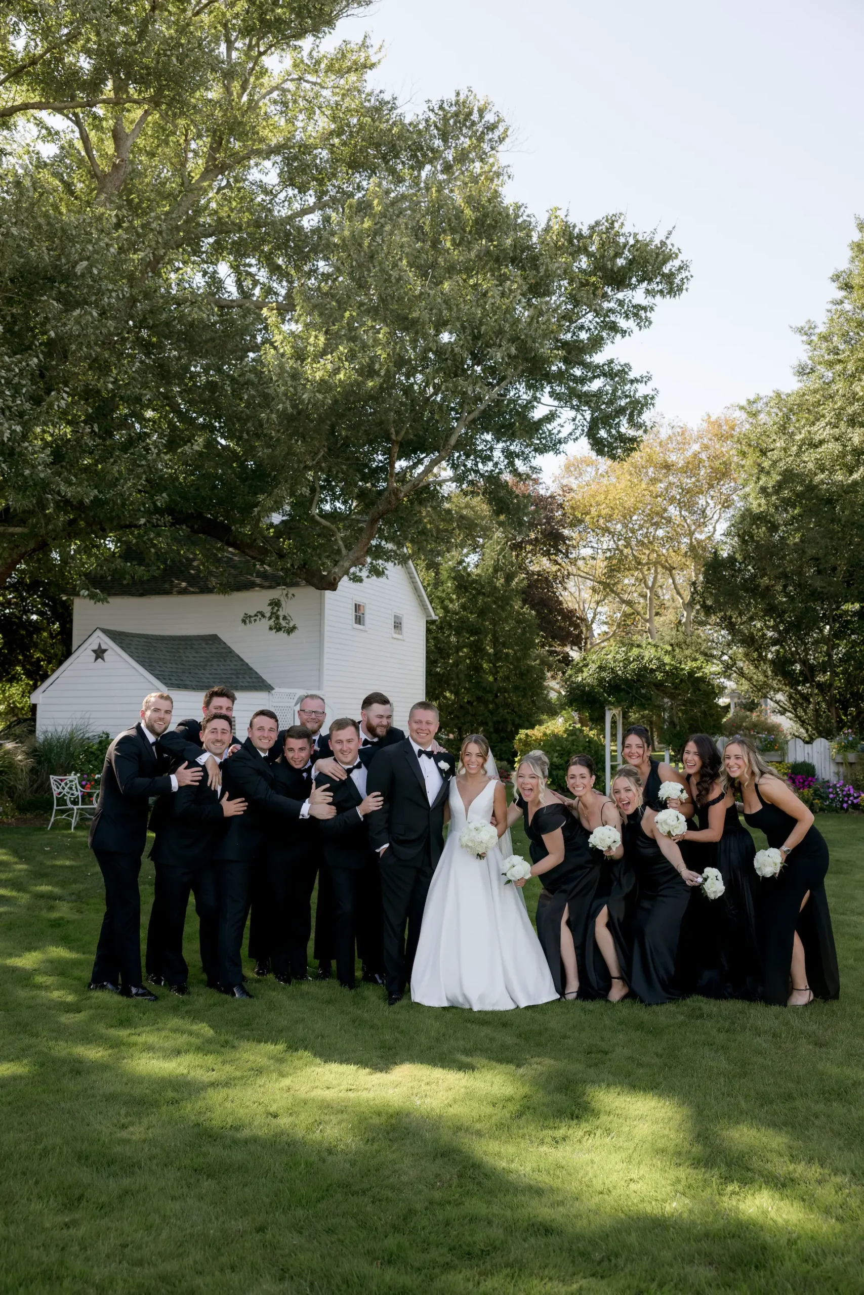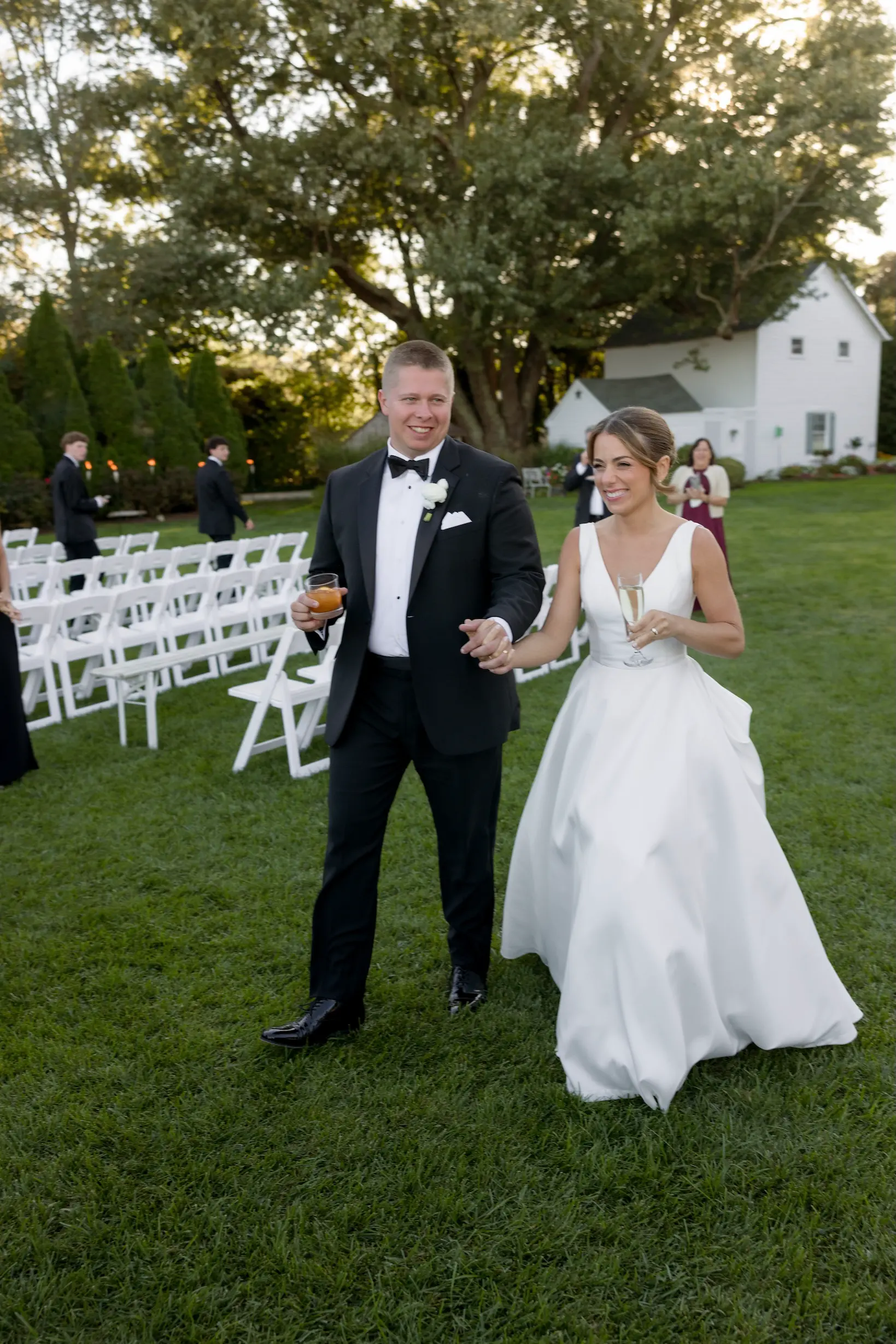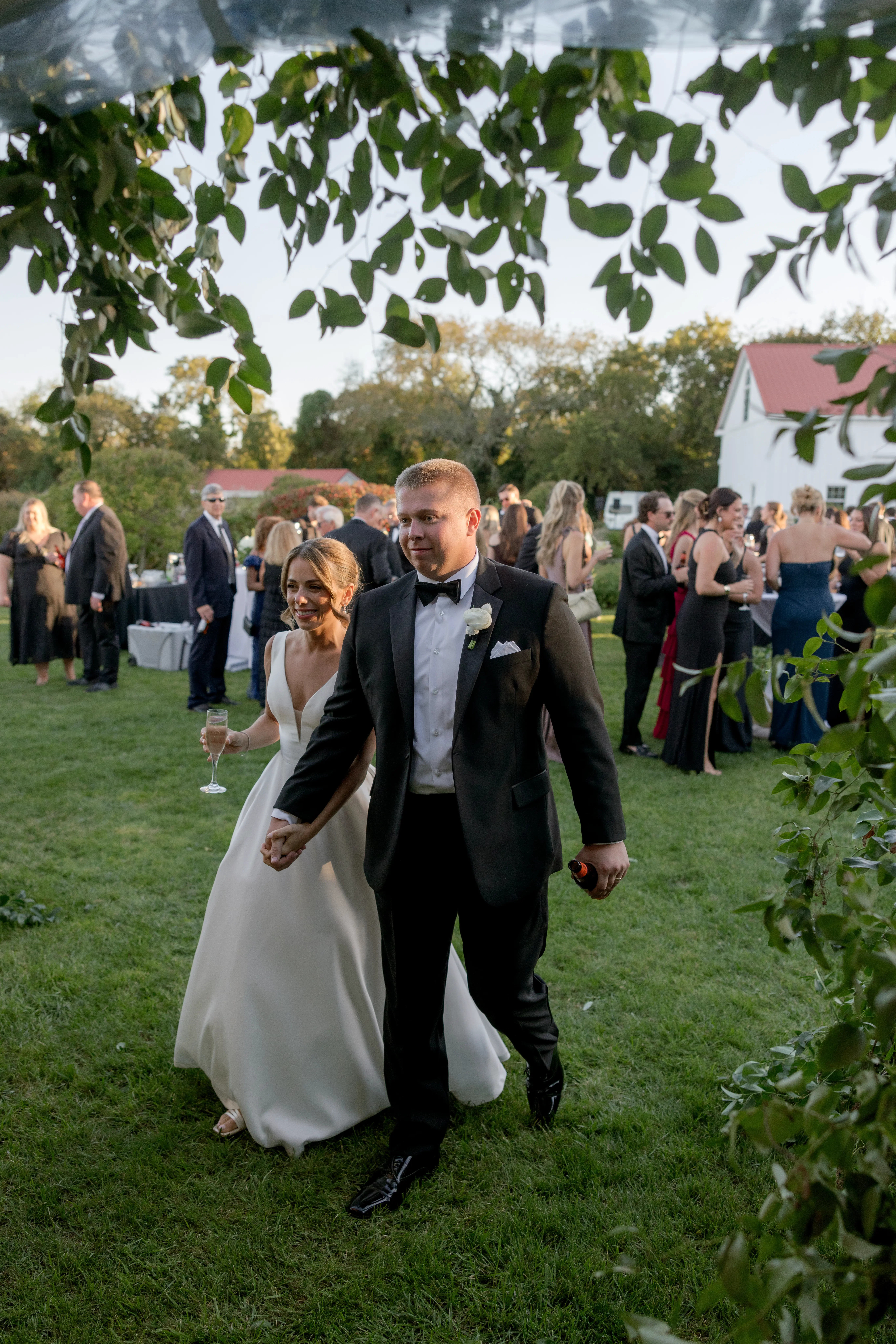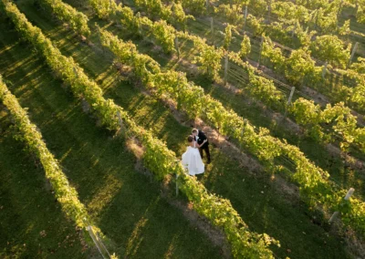 Set among the vineyard rows at Isaac Smith Vineyard, this October wedding brought together classic black and white wedding design, natural greenery, and a beautiful sailcloth tent reception. The result was an outdoor celebration that felt polished, timeless, and perfectly suited to the vineyard setting.