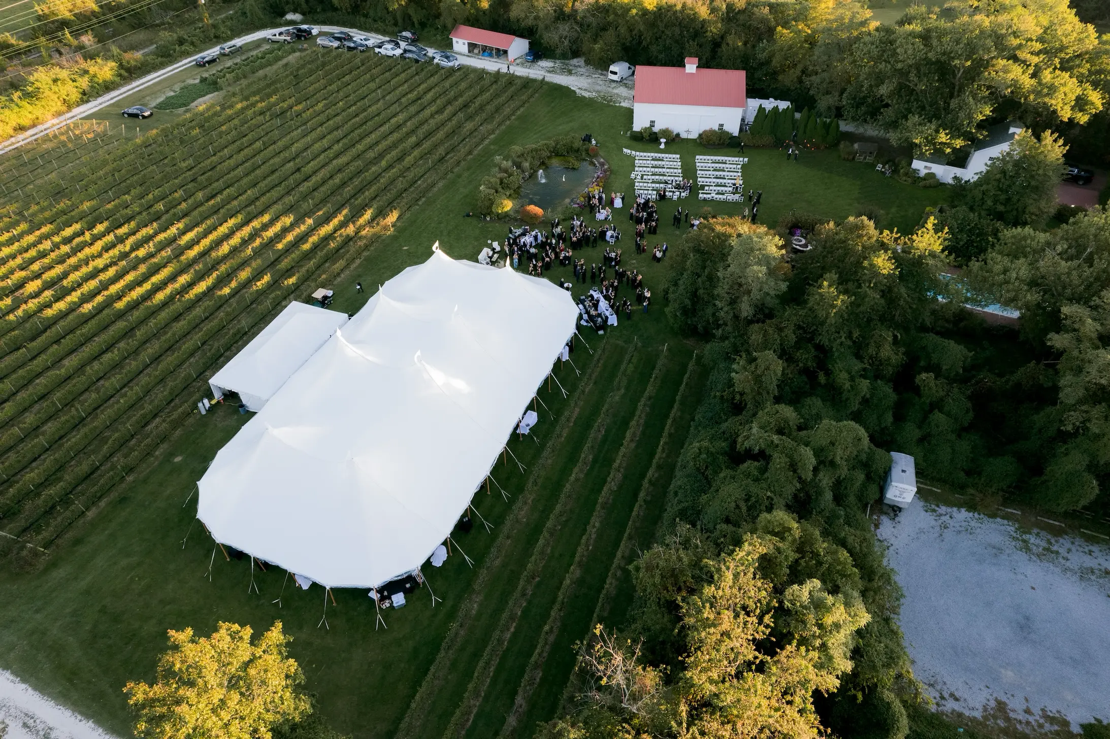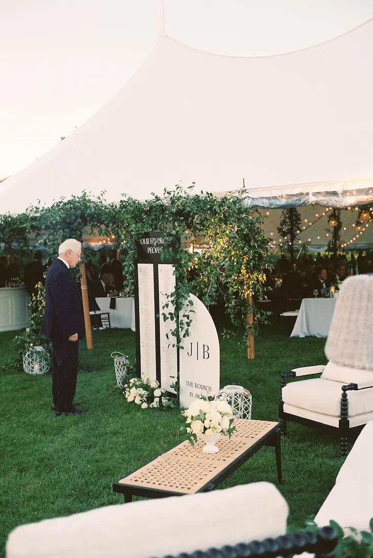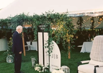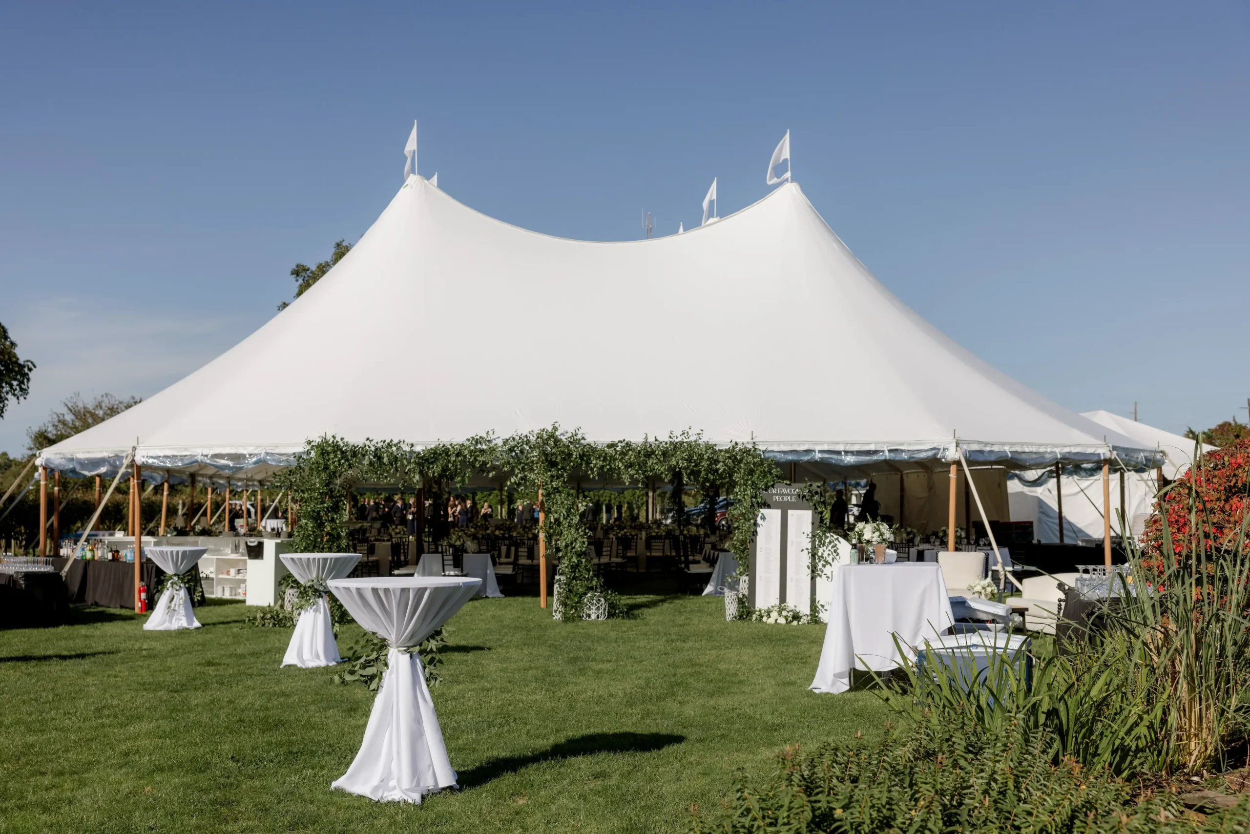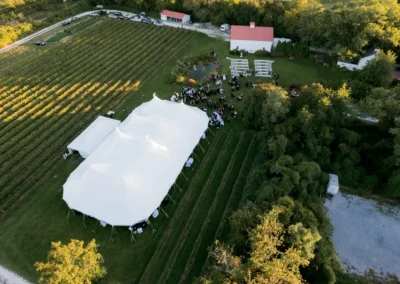 Outside the tent, guests were welcomed with cocktail tables, lounge seating, custom signage, and vineyard scenery that made the entire property feel connected from ceremony to reception. From the aerial views of the tent beside the vines to the intimate details under the canopy, this Isaac Smith Vineyard wedding was a beautiful example of how thoughtful tenting can enhance an outdoor wedding venue!