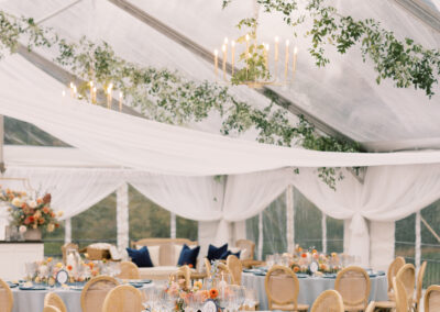 Despite steady rain, the celebration unfolded with warmth and magic. Thanks to an incredible vendor team and a thoughtfully designed tented environment, C + J’s wedding felt intimate, romantic, and completely uninterrupted by the weather. A true reminder that with the right planning and execution, outdoor weddings can shine—no matter the forecast.