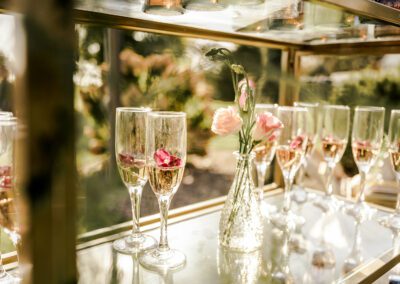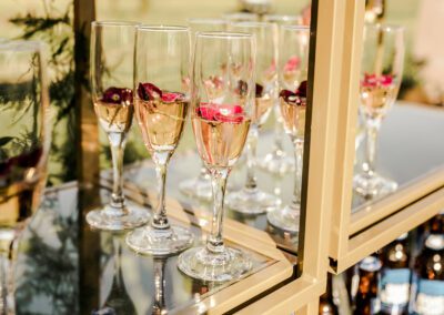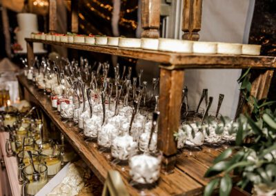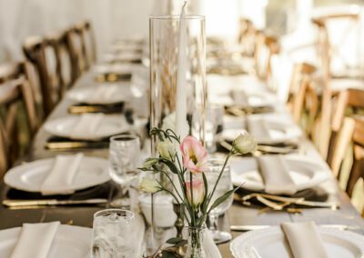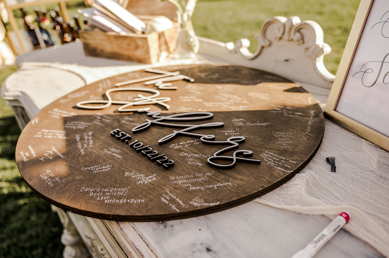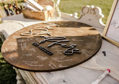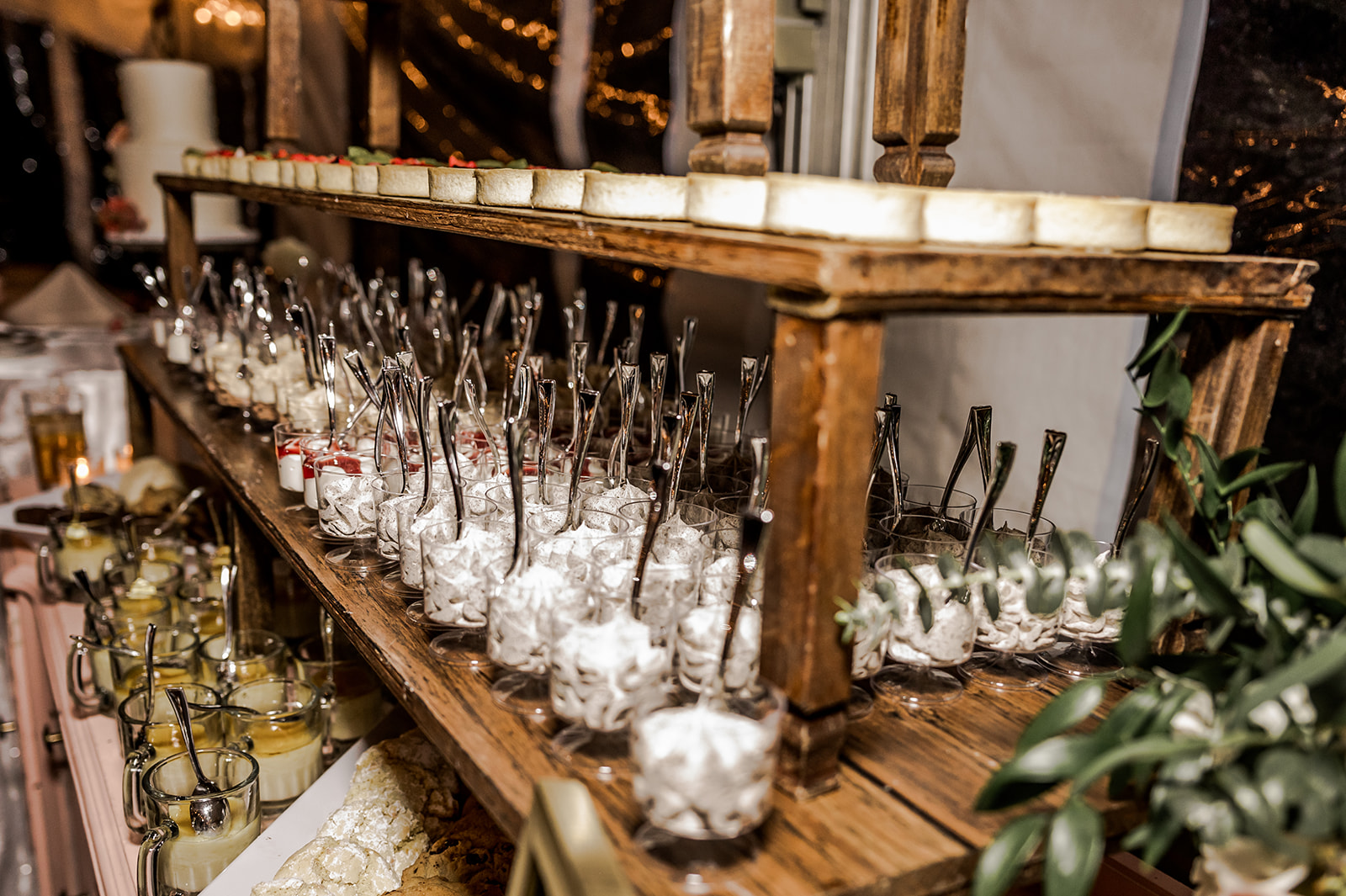 The reception design balanced natural surroundings with polished wedding details. Greenery installations, soft lighting, floral accents, and a clear tent ceiling created a romantic atmosphere that felt connected to the property. As the evening continued, the tent allowed guests to enjoy the beauty of the outdoor setting while staying protected from cooler late-October temperatures.