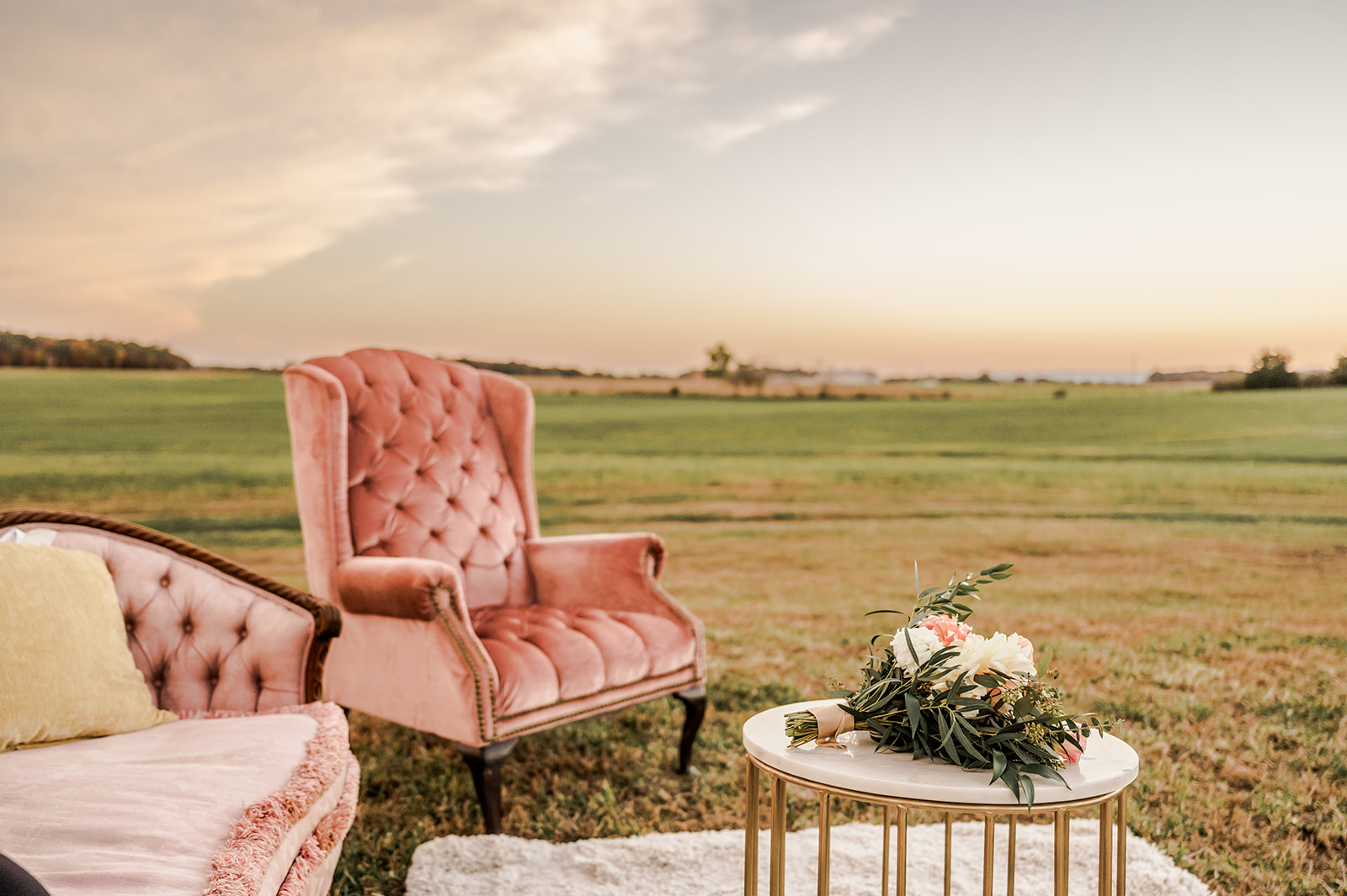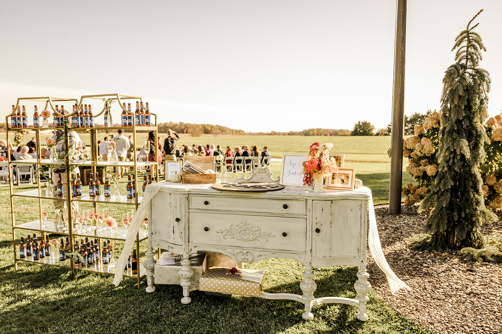 This late October wedding at a private home in Taneytown, Maryland transformed a family farm into a beautiful outdoor wedding venue with the help of a clear top tent, staging, heating, and thoughtfully planned event rentals.