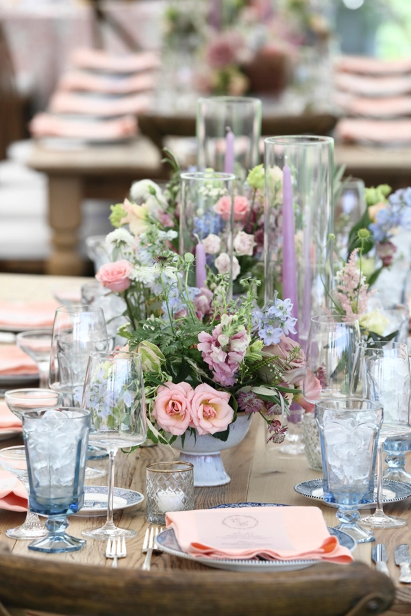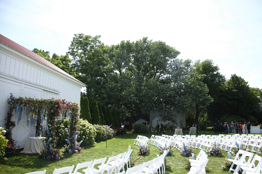 Garden-inspired weddings work especially well in vineyard settings because they allow the landscape to become part of the celebration. At Isaac Smith Vineyard, the ceremony, cocktail hour, and tented reception all felt connected through thoughtful rental choices, soft floral details, and a layout designed to move guests naturally through the property.