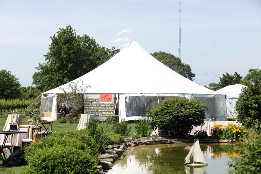 This garden party wedding at Isaac Smith Vineyard in Cape May, New Jersey paired the natural beauty of a vineyard setting with a romantic, flower-filled reception under a sailcloth tent.