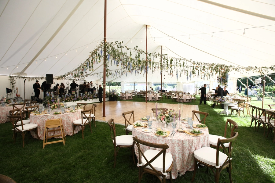 From the sailcloth tent to the dance floor and seating, every rental element helped create a Cape May wedding reception that felt elegant, inviting, and rooted in the beauty of the outdoors.