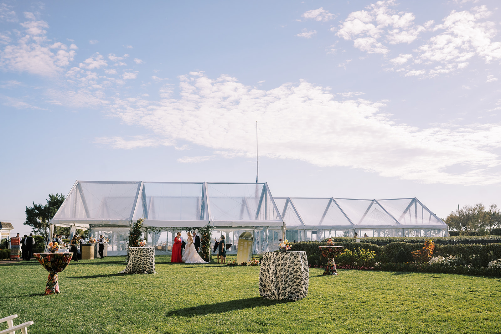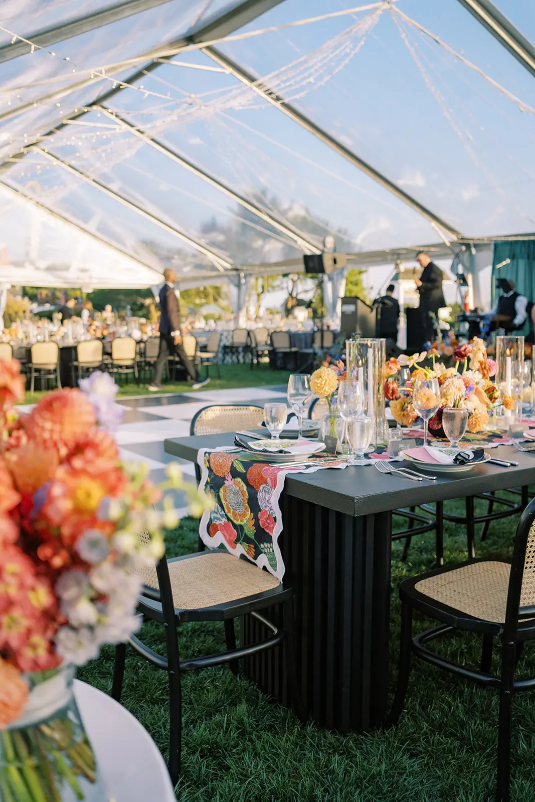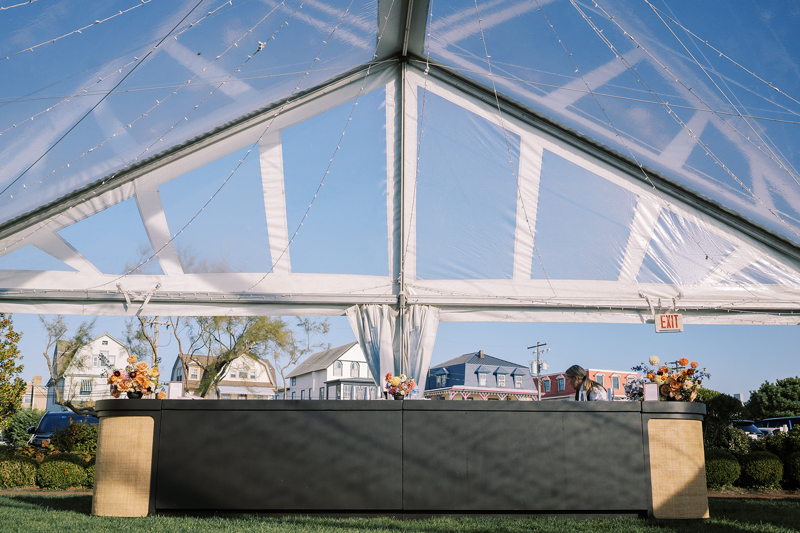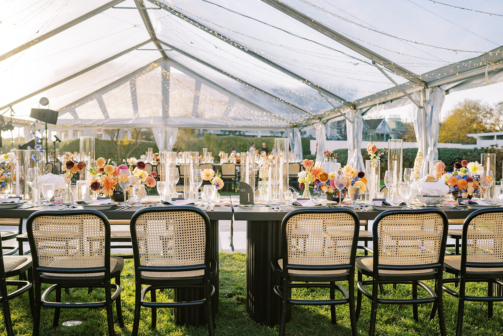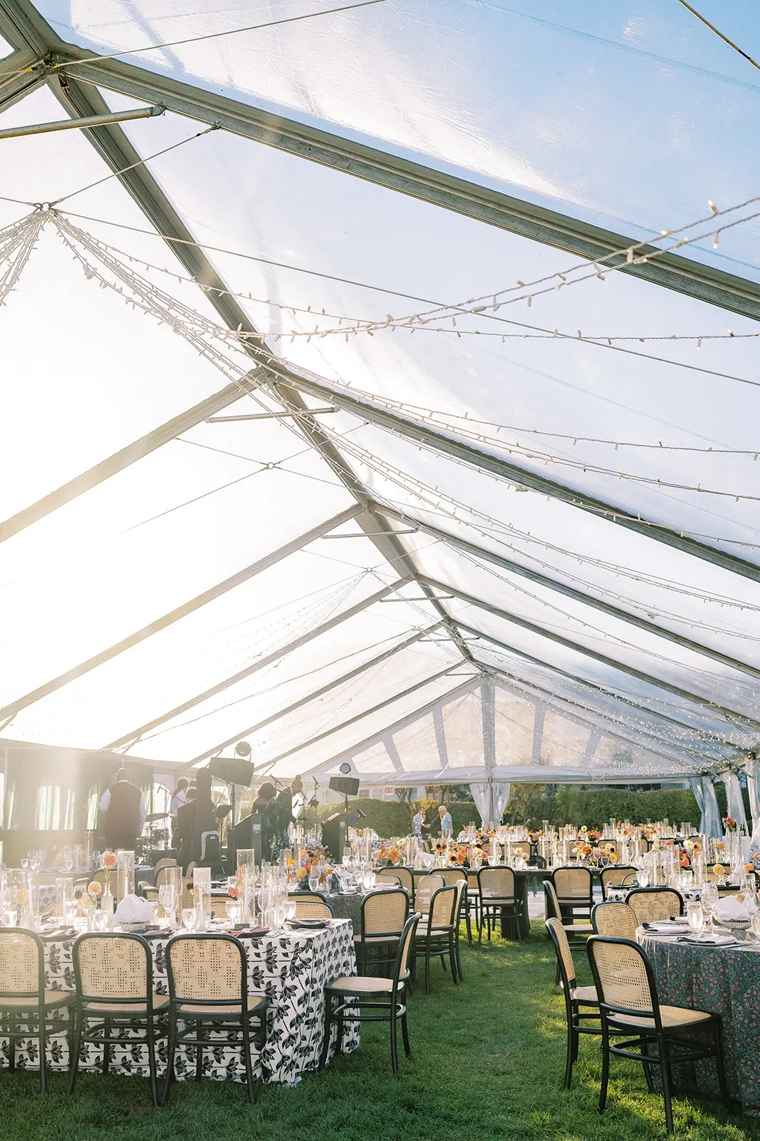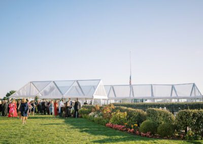 This summertime wedding at Congress Hall in Cape May, New Jersey brought together classic coastal style, modern black and white details, and a clear top tent designed for an elegant outdoor reception.