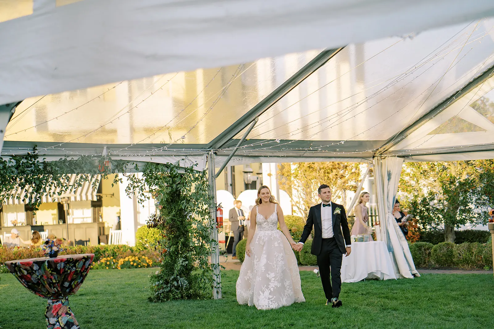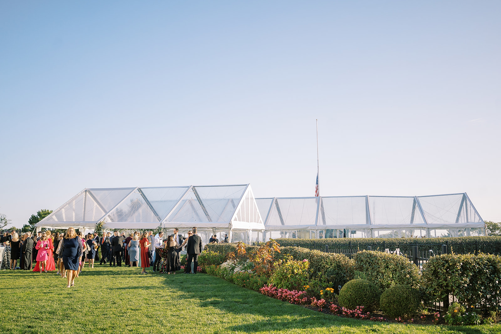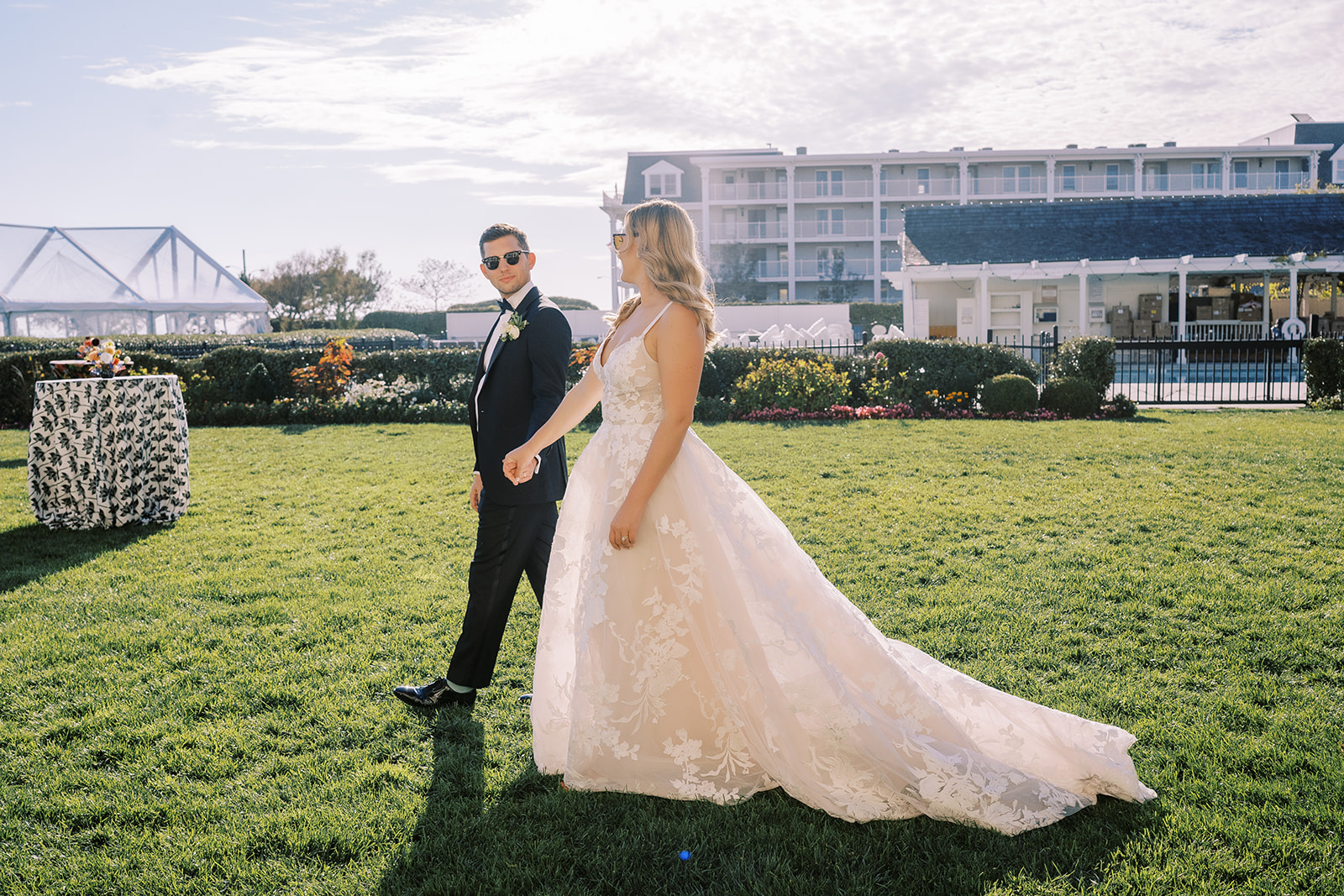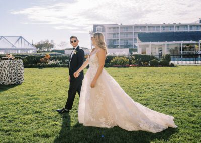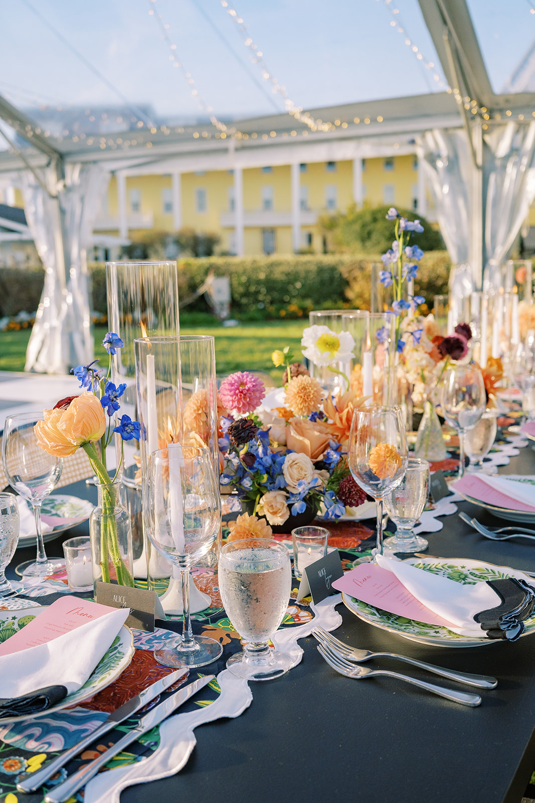 This summertime wedding at Congress Hall in Cape May, New Jersey brought together classic coastal style, modern black and white details, and a clear top tent designed for an elegant outdoor reception.