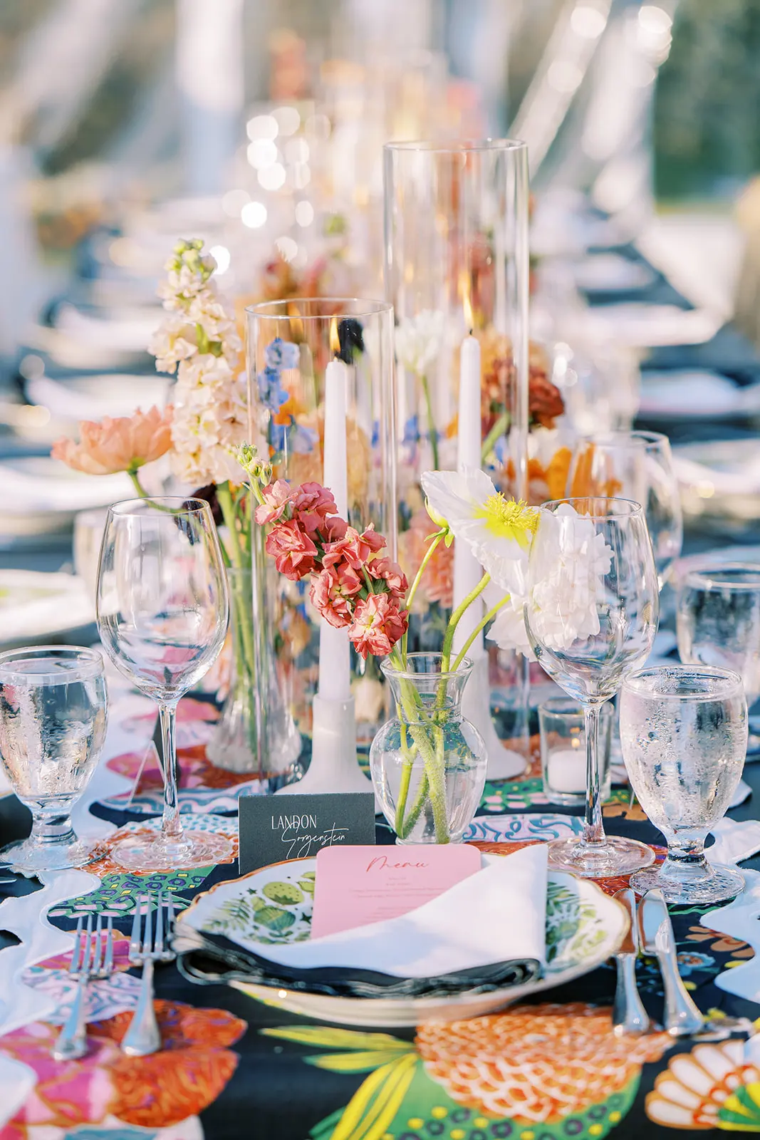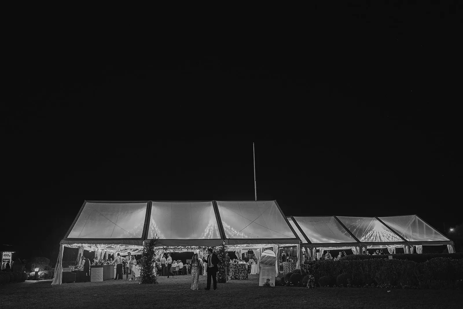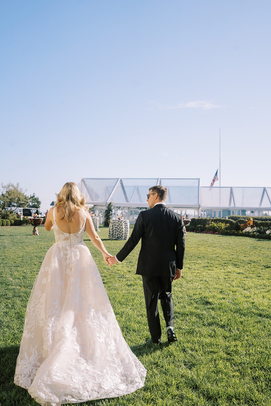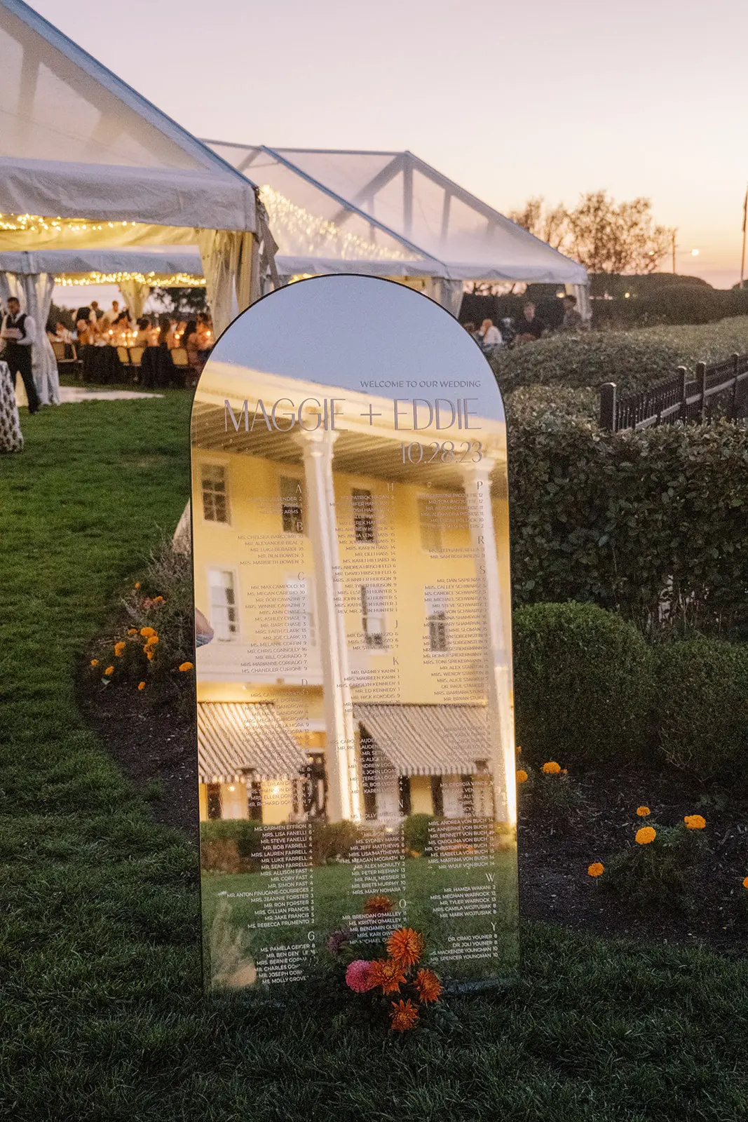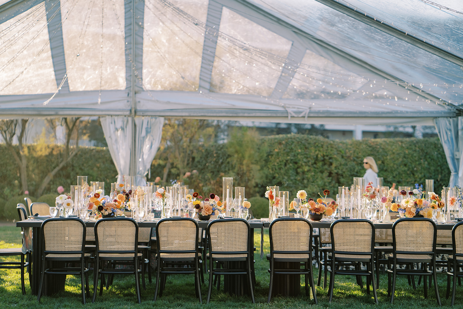 This summertime wedding at Congress Hall in Cape May, New Jersey brought together classic coastal style, modern black and white details, and a clear top tent designed for an elegant outdoor reception.