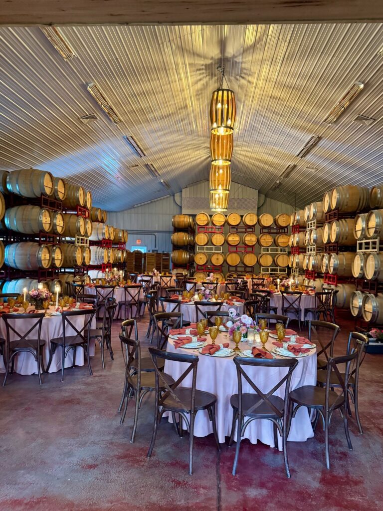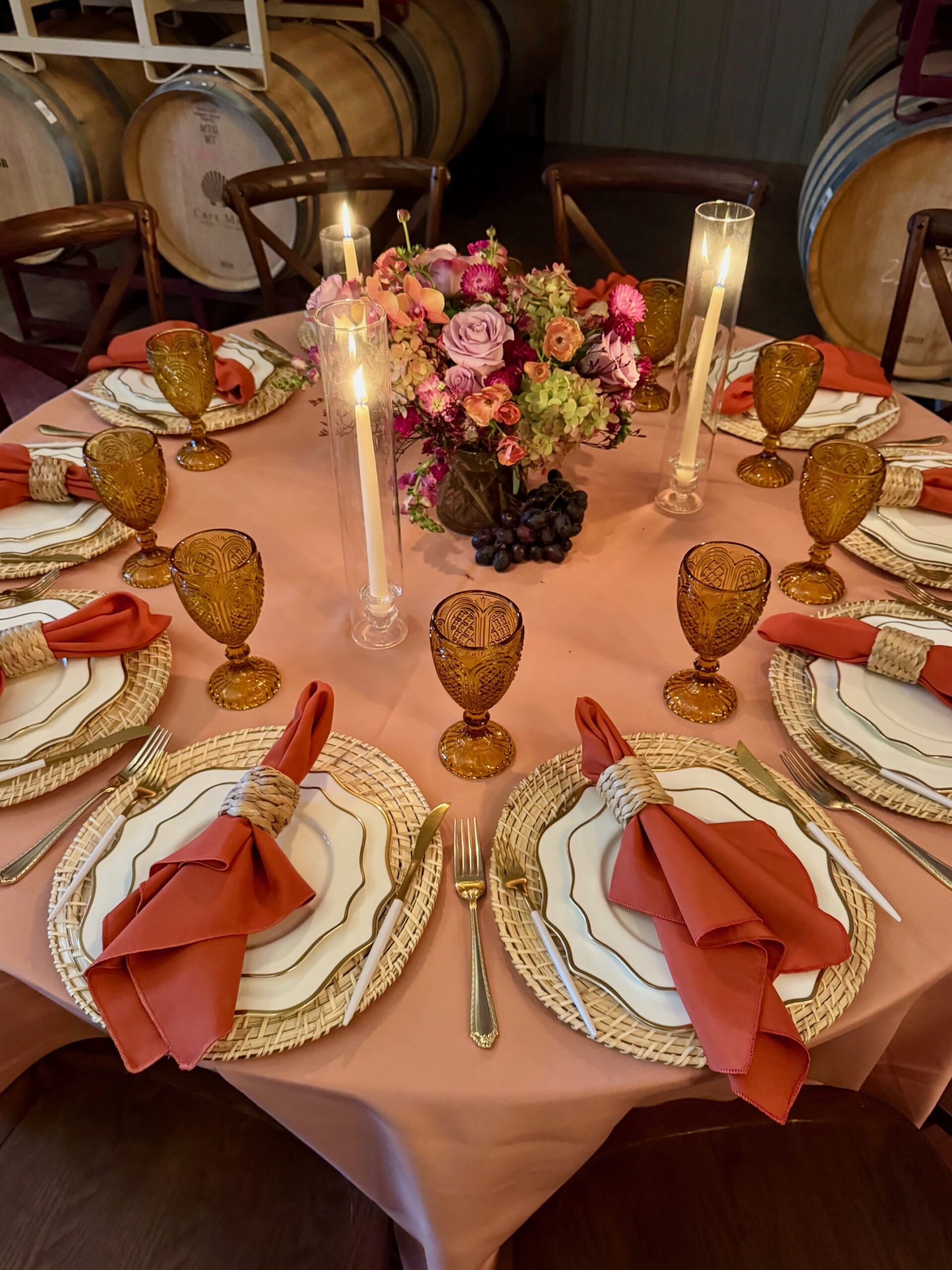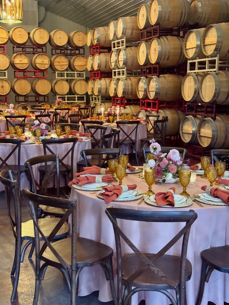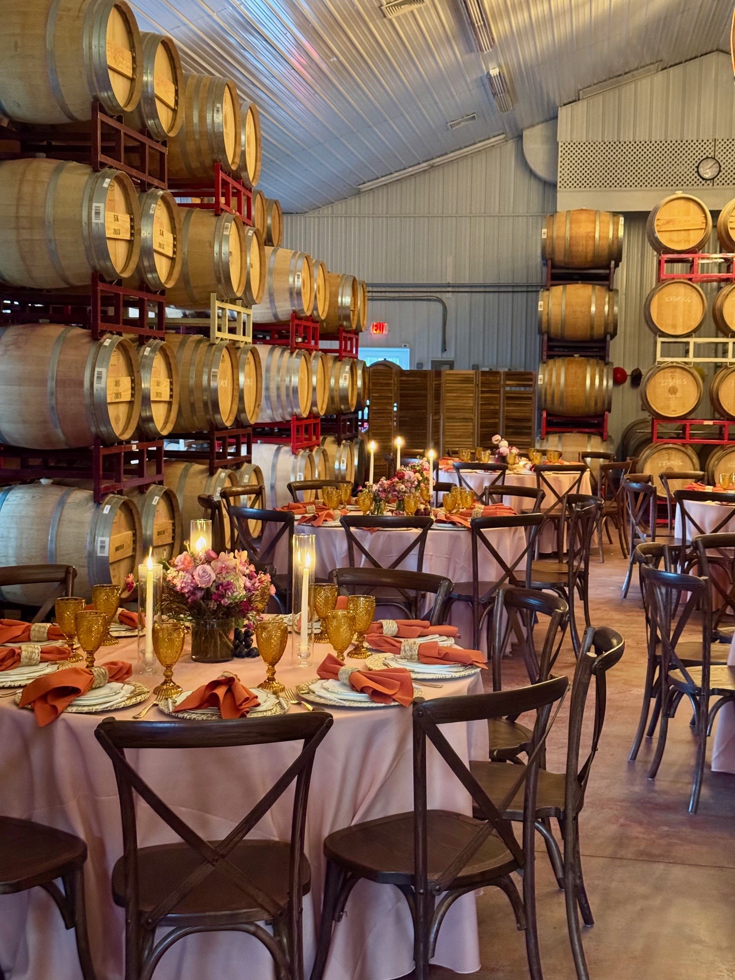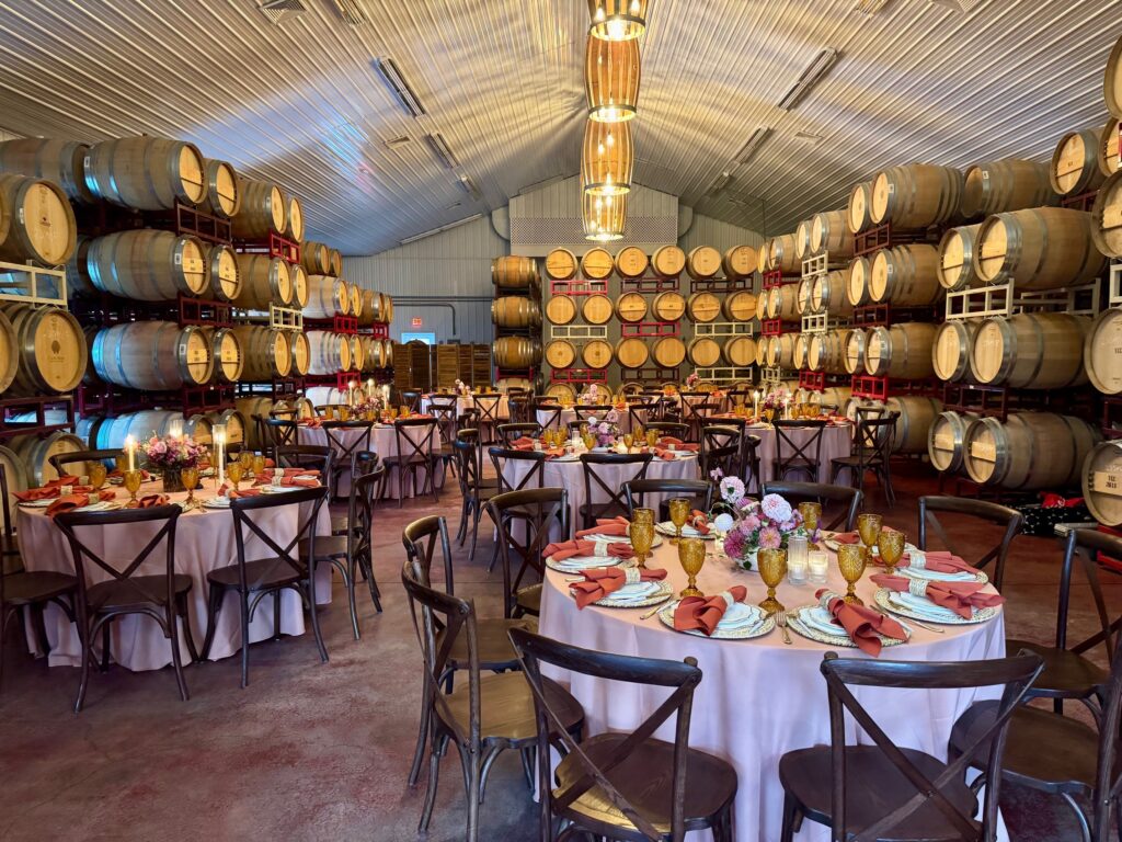 Rich autumn tones of tiger lily and burnt orange brought seasonal warmth to the tablescape, pairing beautifully with the natural textures of the winery grounds. With catering by Washington Inn Catering and event rentals by Collective Event Group, the shoot highlights how thoughtful design and collaboration can transform a winery setting into an effortlessly elegant wedding experience.