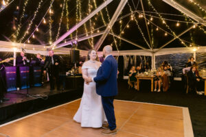 Lisa and Dan’s wedding was a romantic celebration set beneath a blanket of stars in the crisp October air. Hosted under our stunning clear top tent, the evening offered unobstructed views of the night sky, creating a truly magical backdrop for their special day. Cascading waterfall lighting illuminated the space with a soft, enchanting glow, blending effortlessly with the autumn ambiance.