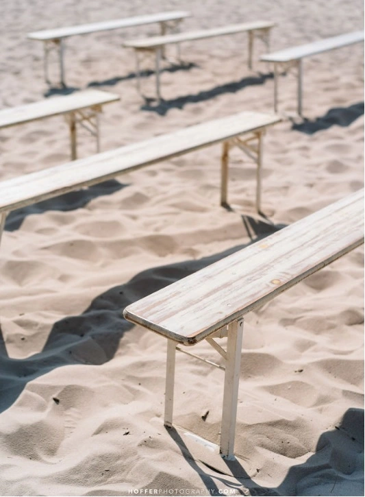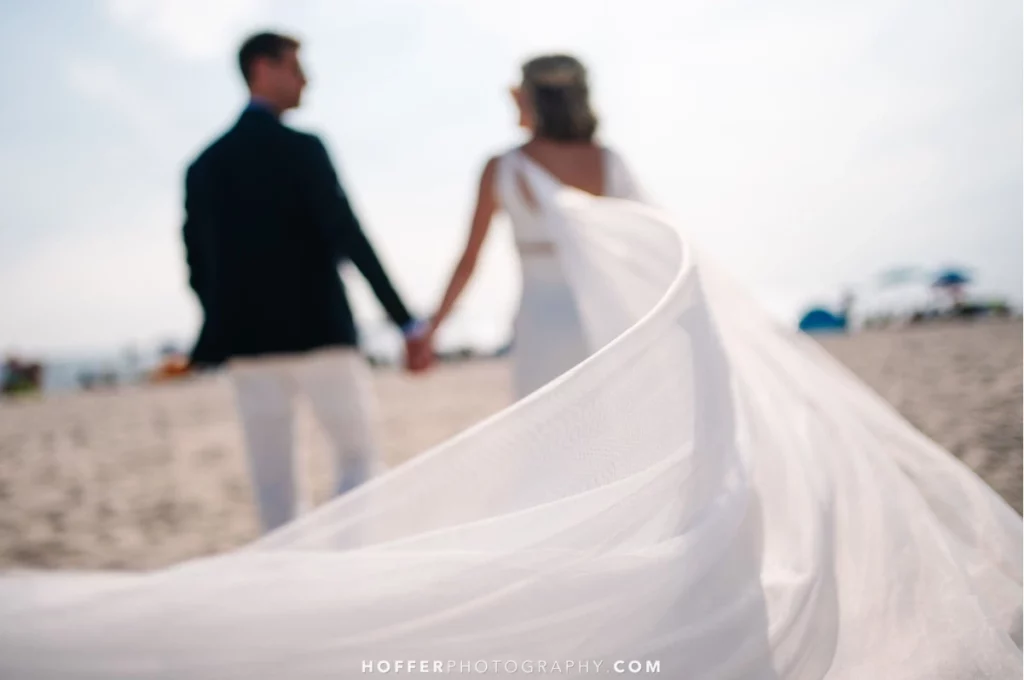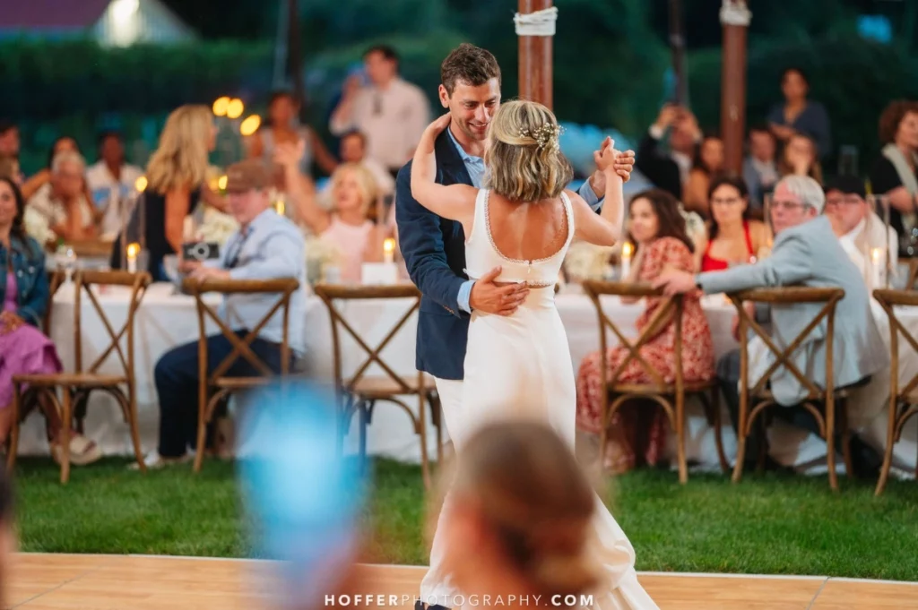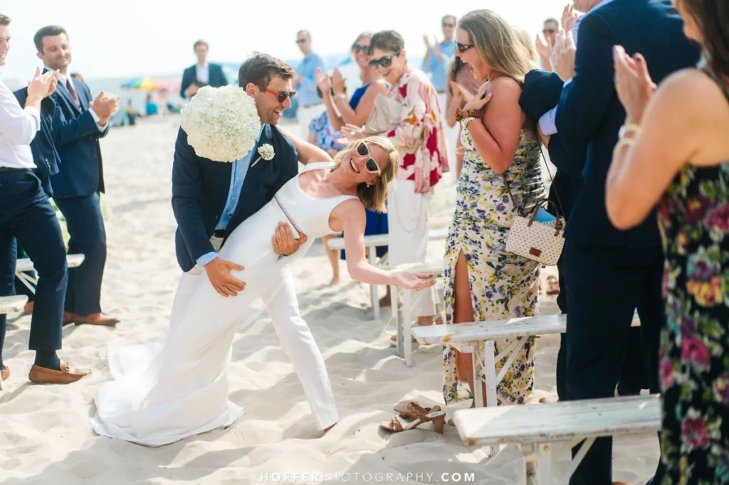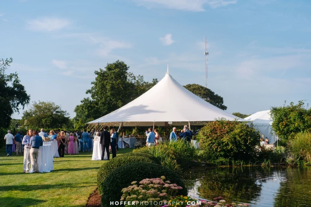 The day began with a sun-kissed beach ceremony, where guests donned sunglasses and sat on our whitewashed benches to witness the couple exchange vows. Following the ceremony, an open-air cocktail hour by the reflecting pond showcased Cape May’s perfect summertime weather.