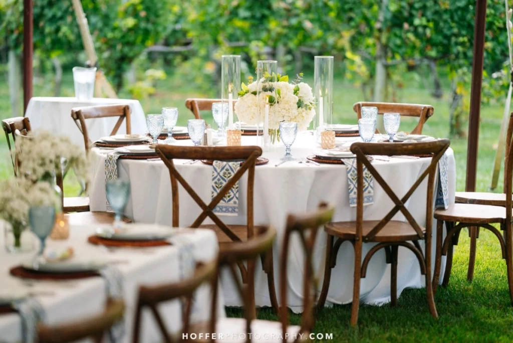Isaac Smith Vineyard set the stage for a sophisticated summer wedding in Cape May, New Jersey, blending the charm of a garden party with the elegance of a vineyard-inspired celebration. With a timeless palette of crisp white, soft blue, and natural tones, every detail exuded understated beauty.