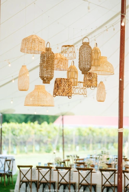 Suspended rattan pendants over the dance floor created a stunning focal point, complemented by strands of Tuscan bistro lights that added warmth and charm. The Collective team ensured every moment was magical as guests danced the night away under the tented canopy of this dreamy vineyard wedding