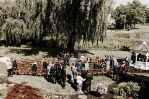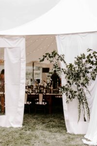 Summertime Wedding held at a private home in Lititz, Pennsylvania. Showcasing our Sailcloth Tent with Bistro Lighting, Crooss-back Chairs and much more!