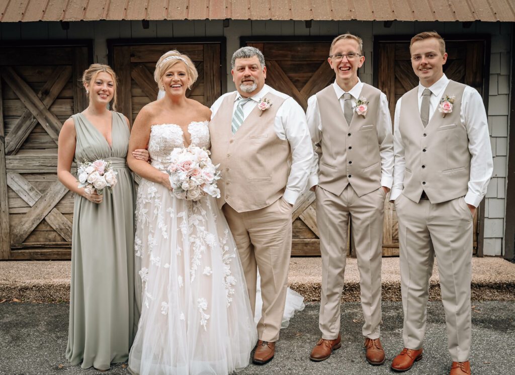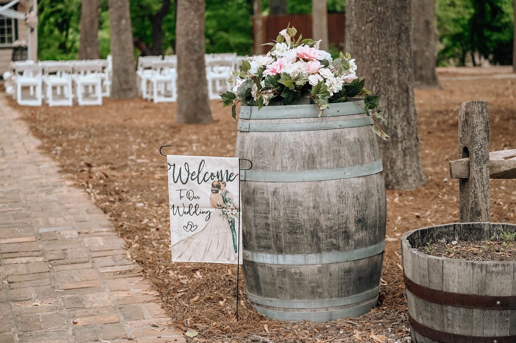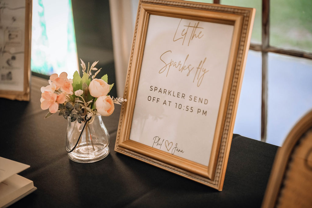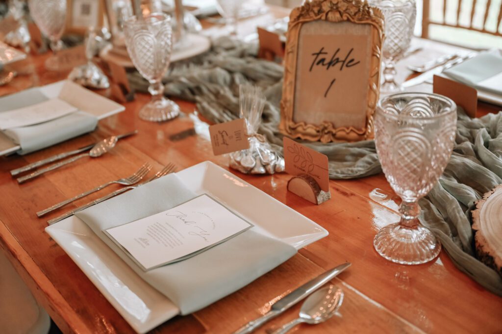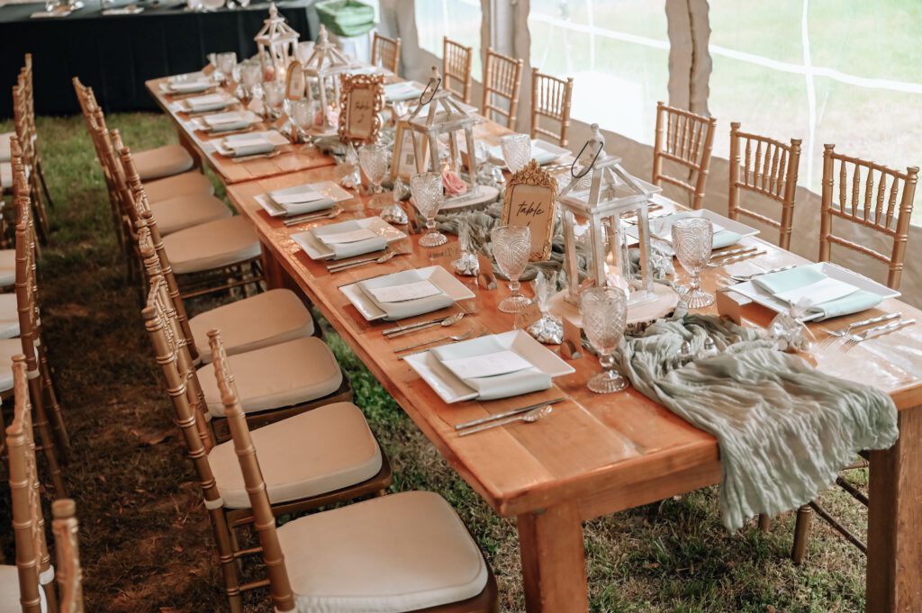 The rental choices perfectly complemented the vineyard’s rustic charm, featuring farmhouse wooden tables and gold Chiavari chairs. J’s personal touches were evident throughout the ceremony and reception décor, adding a unique and heartfelt element to the entire event.
