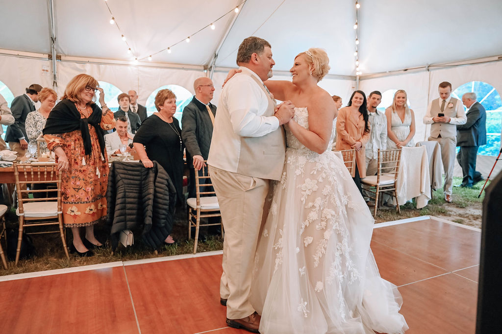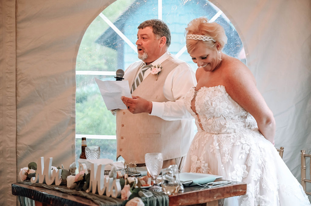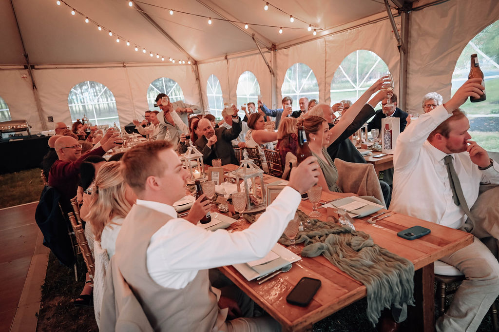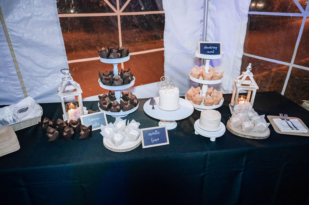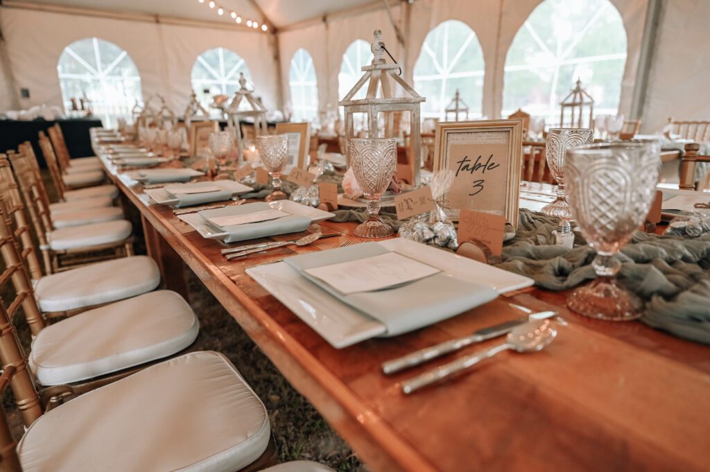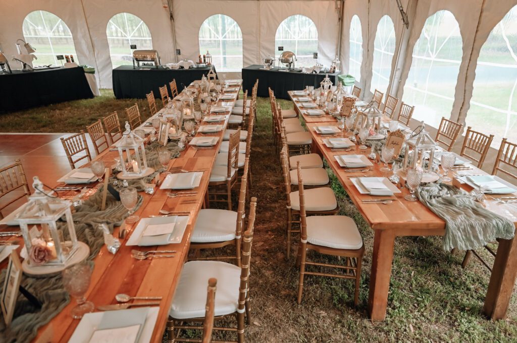 For the reception, guests transitioned to our elegant white tent, situated on the lawn adjacent to the Galleries building. J envisioned an outdoor celebration surrounded by the vineyard’s picturesque views, and the tent rental offered the perfect solution—providing an open-air experience while offering protection from the elements. Luckily, the weather was perfect!