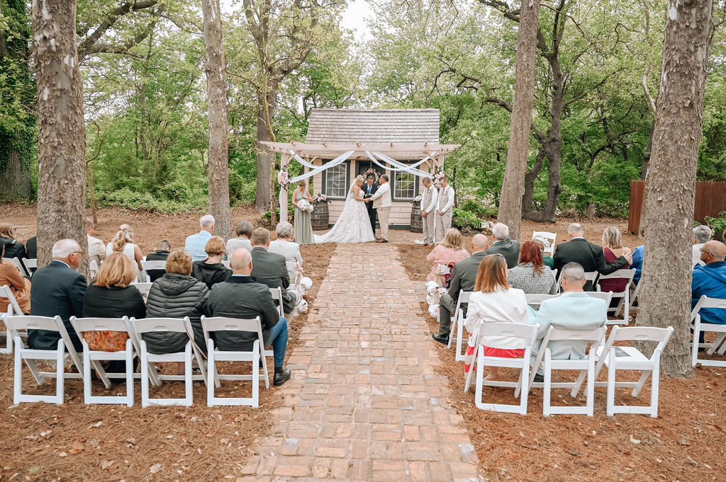 It was an absolute joy to work with our client, J, throughout the wedding planning process. She hosted a beautifully intimate ceremony and reception at Nassau Valley Vineyards in Lewes, DE. The ceremony took place outdoors in The Grove, beneath the serene canopy of shade trees.