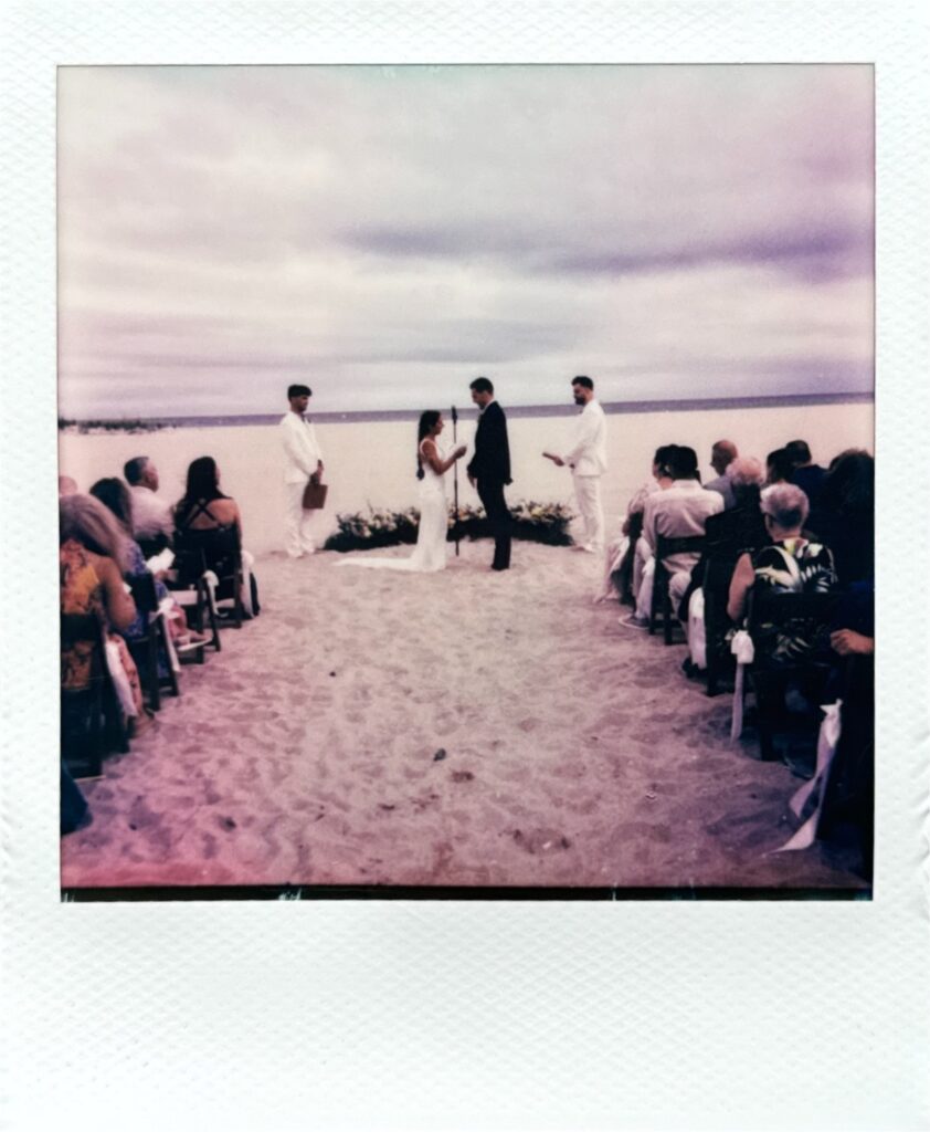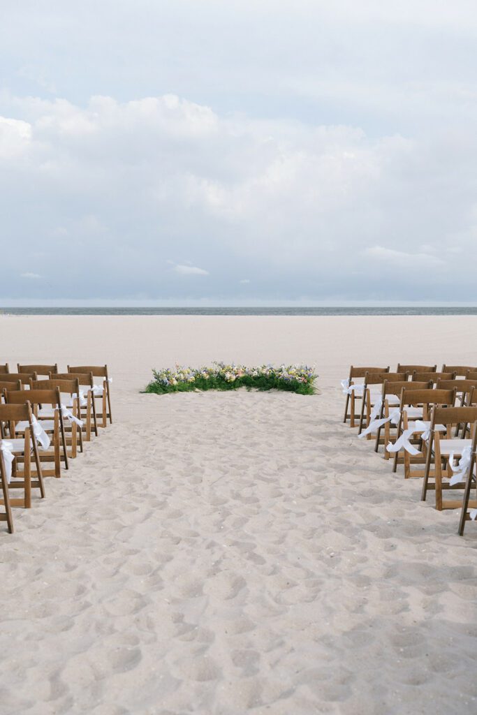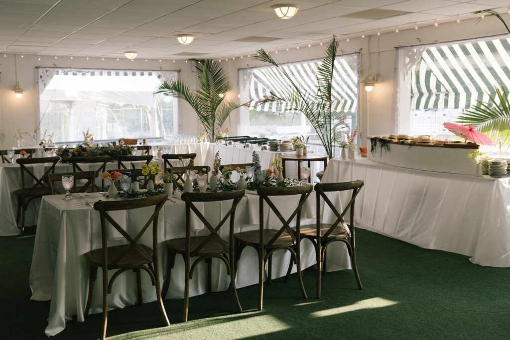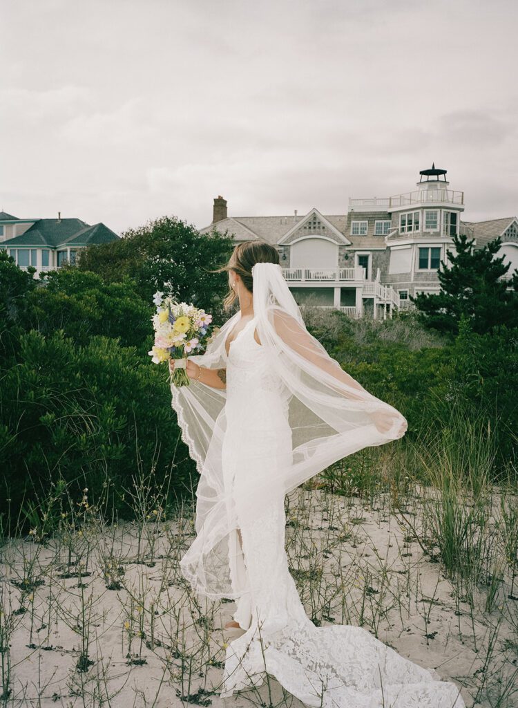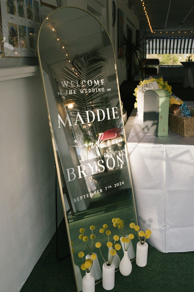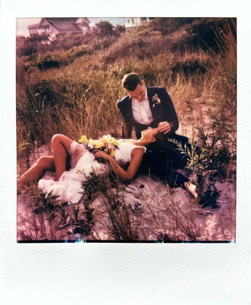 The couple embraced a cheerful palette of coral, yellow, and blue, which was beautifully woven throughout the day. From the playful floral aisleway lined with bouncy blooms to the charming bud vases decorating the reception tables, every detail exuded joy and whimsy. The couple’s creative food choices also made the day extra special, adding a fun and personalized touch to their wedding festivities.