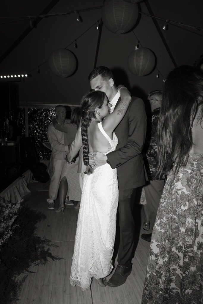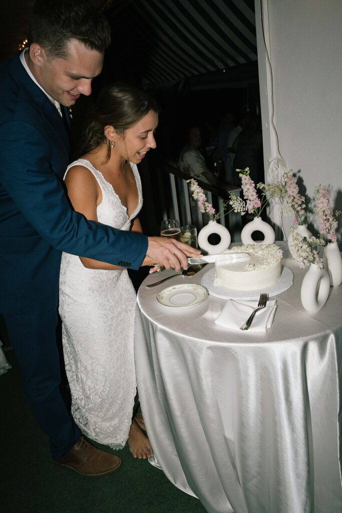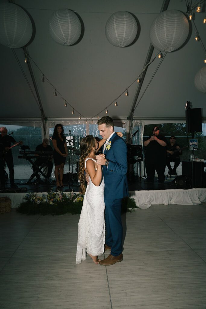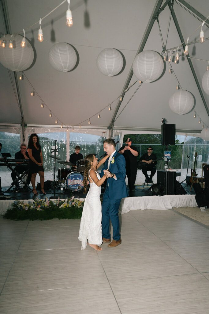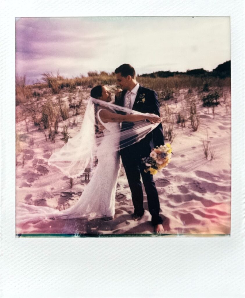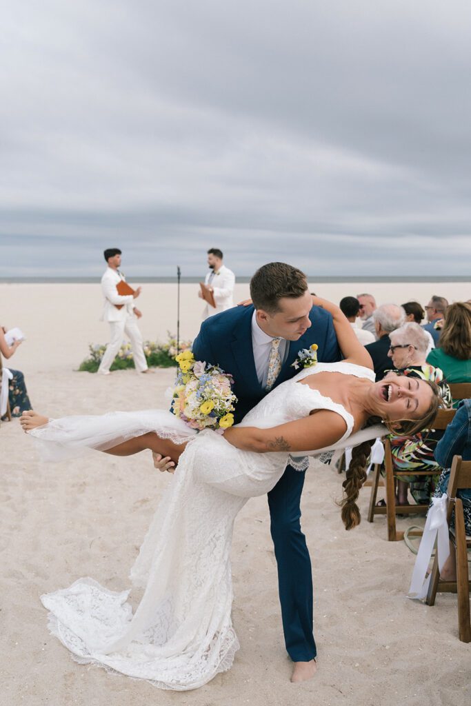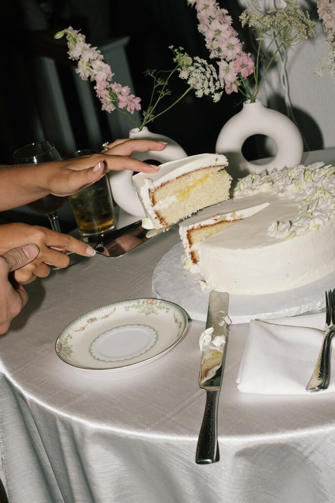 The couple embraced a cheerful palette of coral, yellow, and blue, which was beautifully woven throughout the day. From the playful floral aisleway lined with bouncy blooms to the charming bud vases decorating the reception tables, every detail exuded joy and whimsy. The couple’s creative food choices also made the day extra special, adding a fun and personalized touch to their wedding festivities.