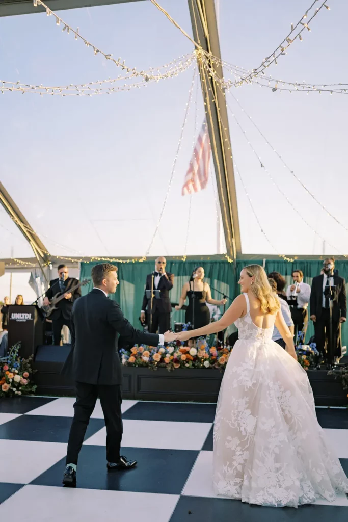 Our picturesque Cape May wedding at Congress Hall was a dream come true! From our stunning Clear Top Tent adorned with Draped Twinkle Lighting to the chic Black & White dance floor, every detail exuded sophistication with a touch of modern flair.