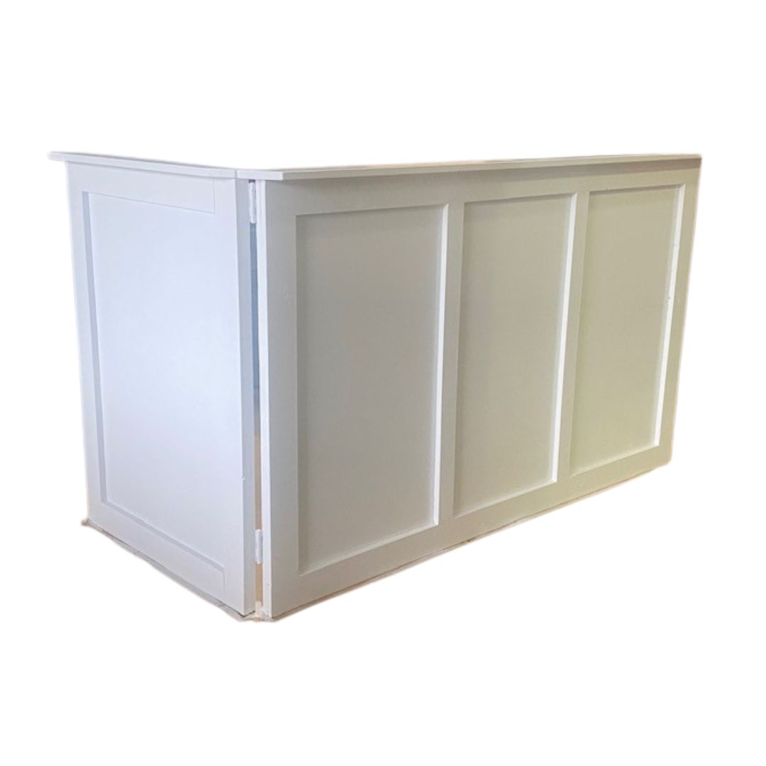 Our NEW handcrafted White Abbey Bar is comprised of decorative paneled white wood. The Abbey bar offers a crisp white accent or modern touch to your next wedding or event!