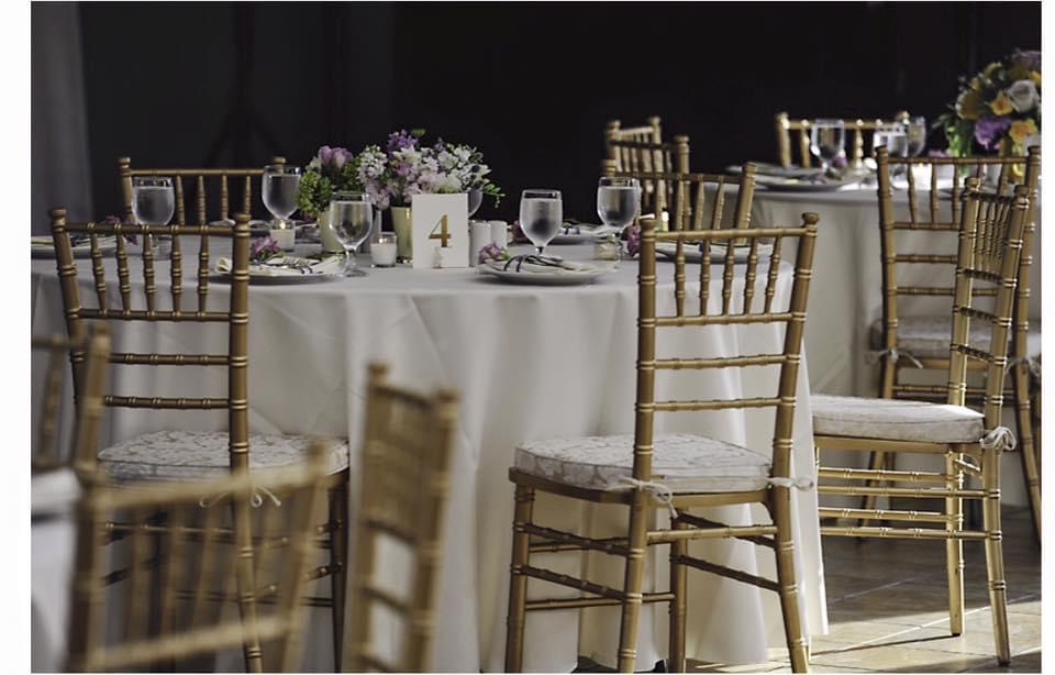 Gold Chiavari Chairs are timeless and classic, dressing up the overall look of your wedding or special event. You have a choice on cushion color as well!