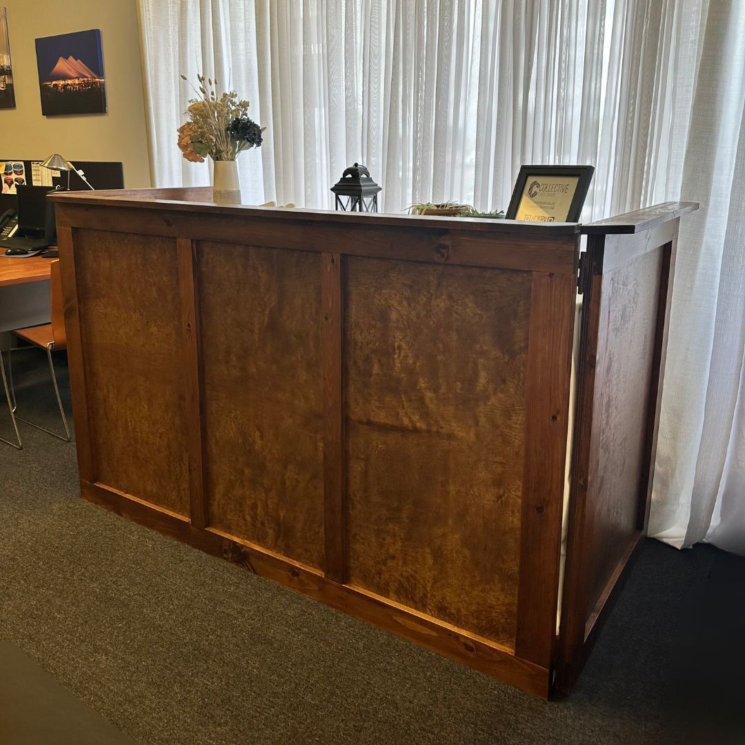 Our NEW handcrafted Henlopen Bar has decorative stained wood panels, similar to our farmhouse tables. The Henlopen Bar offers a natural warm wood accent and stately touch to your next wedding or event!