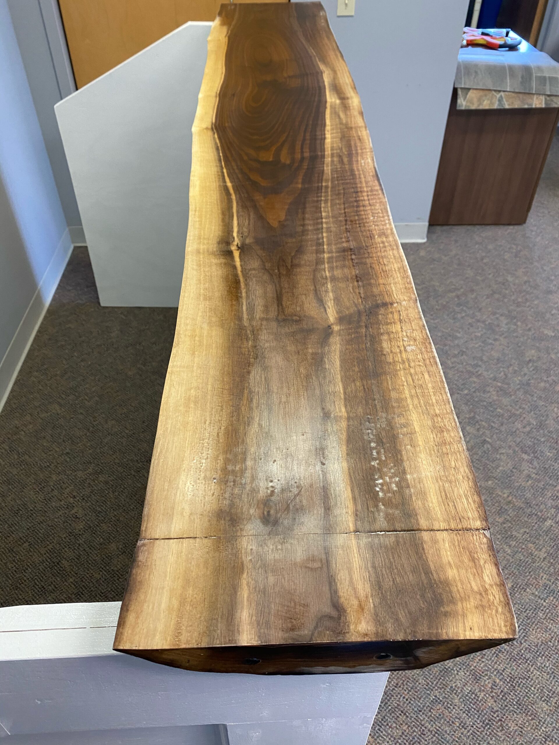 Our Whitaker Bar offers a white wood paneled front with stained natural wood top ledge. A great rental product to dress up your wedding or event bar set up.