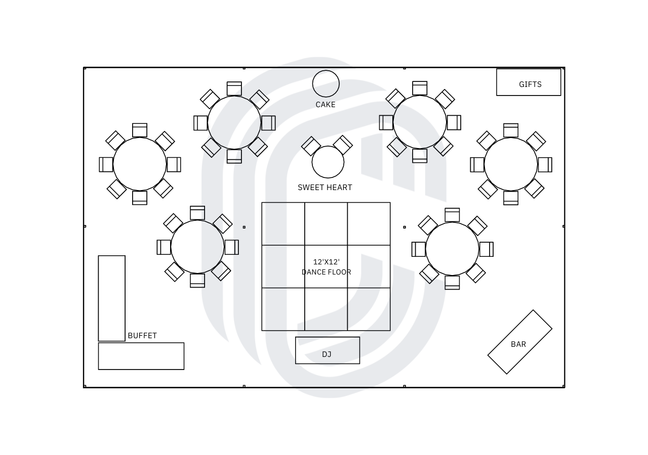 40′ by 80′ Tent Layout for a 136 Guest Wedding