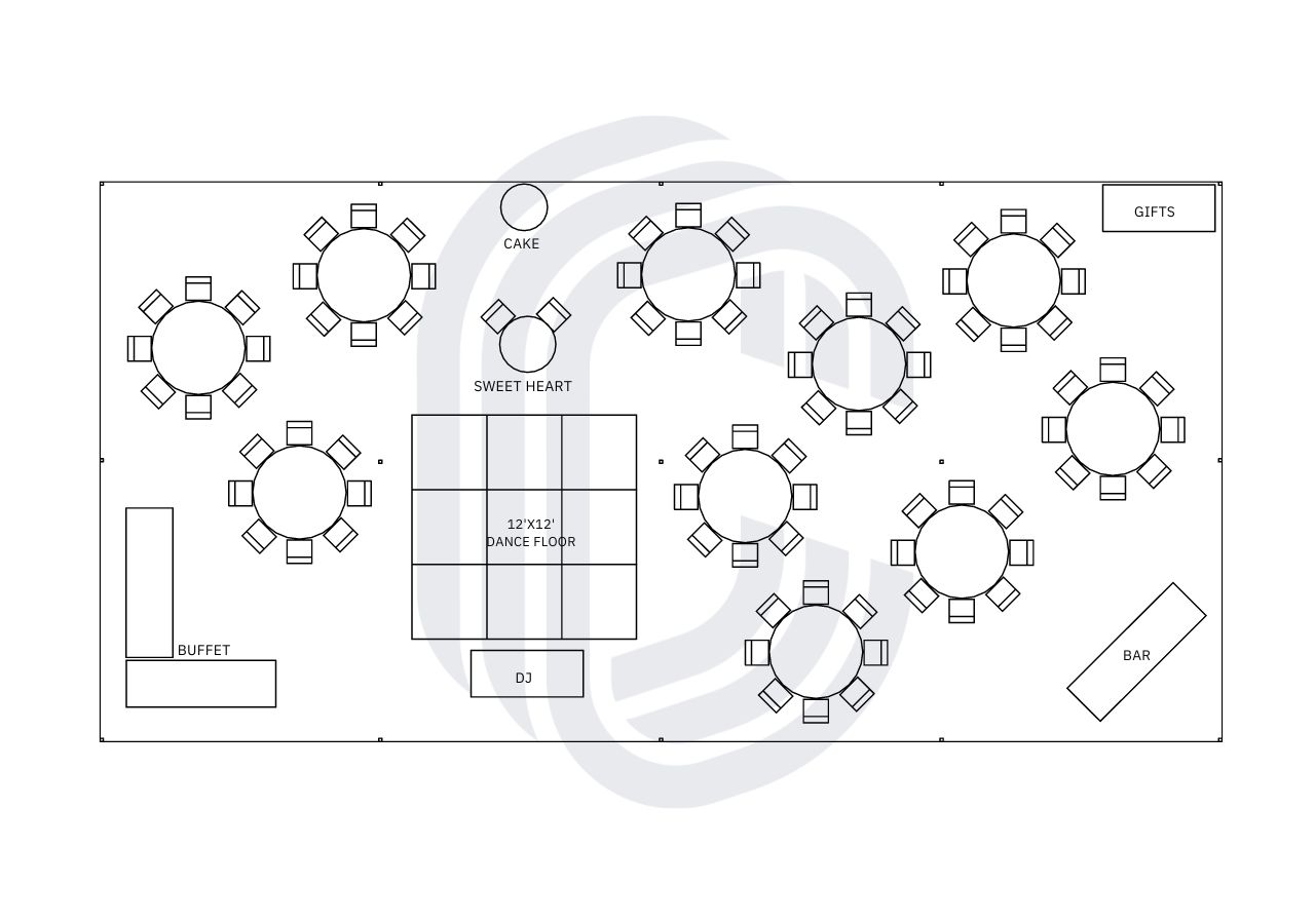30' by 60' Pole Tent Layout for an 80 Guest Wedding