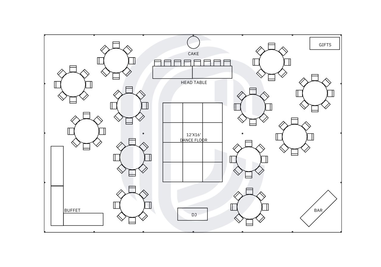 40′ by 60′ Tent Layout for a 104 Guest Wedding