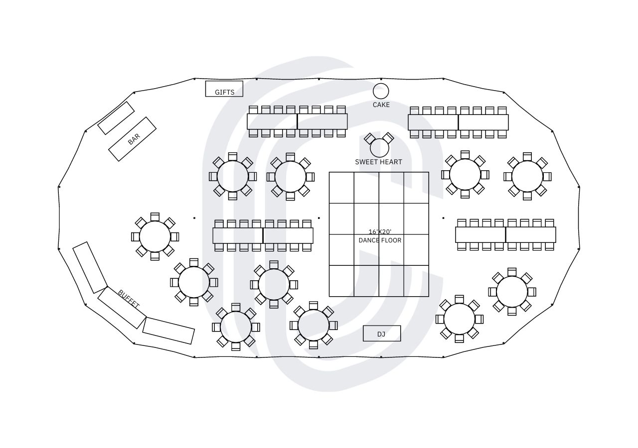 40′ by 80′ Tent Layout for a 136 Guest Wedding